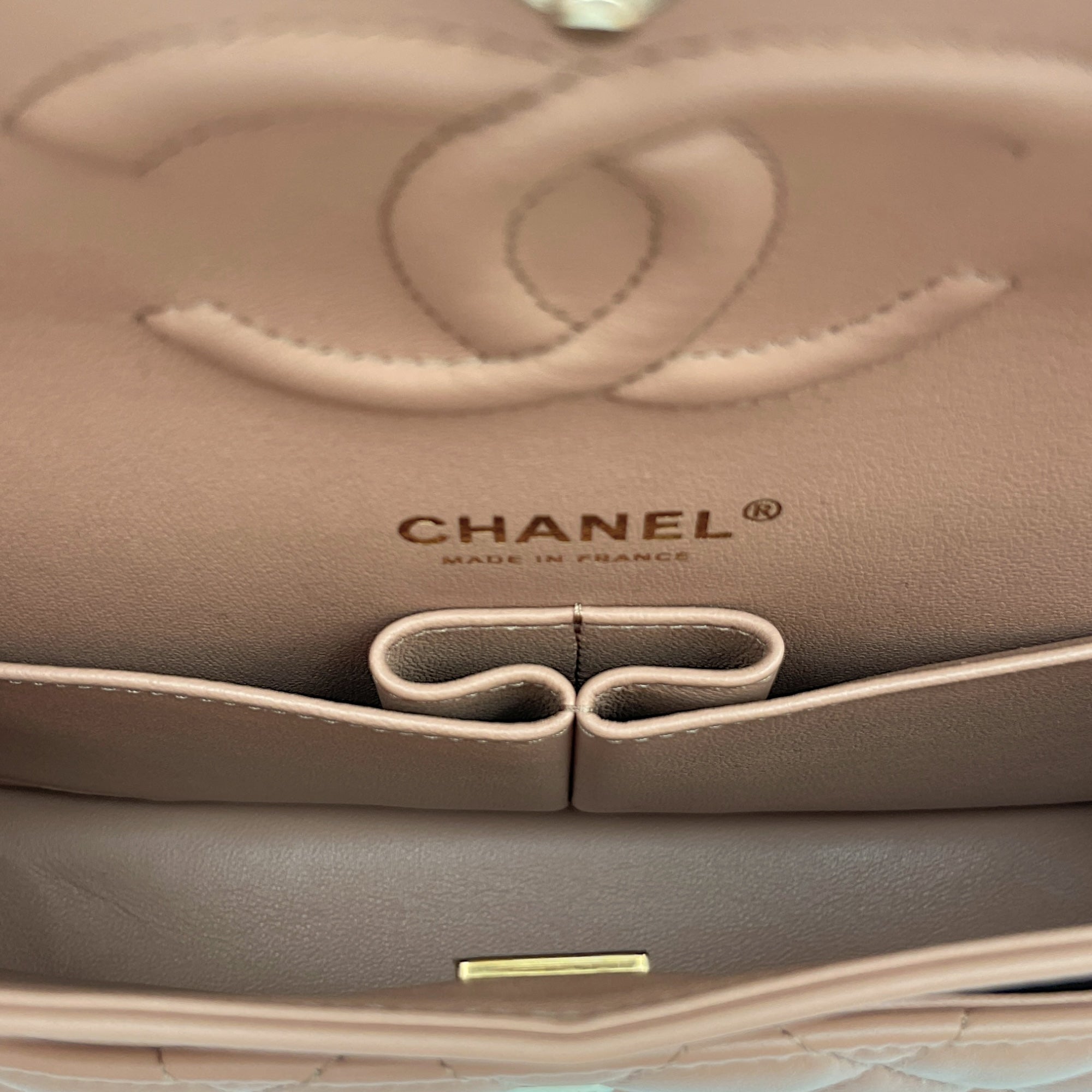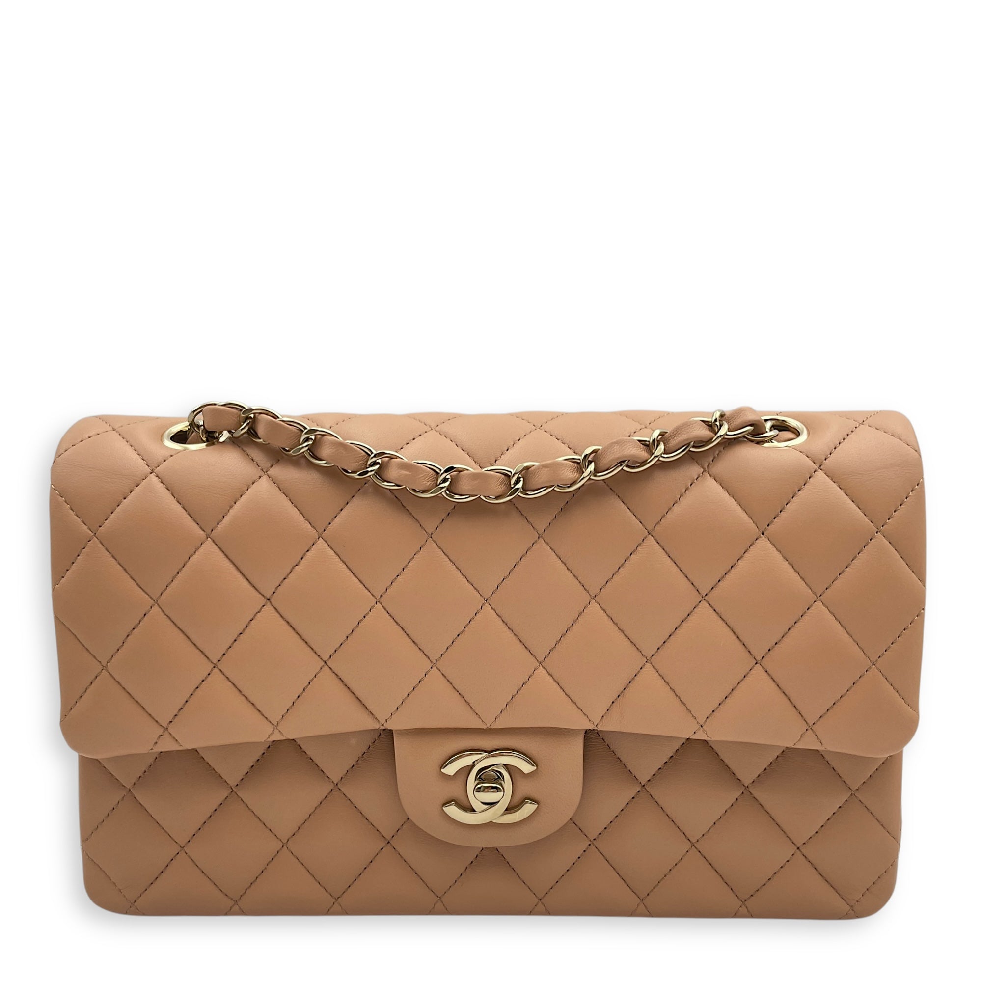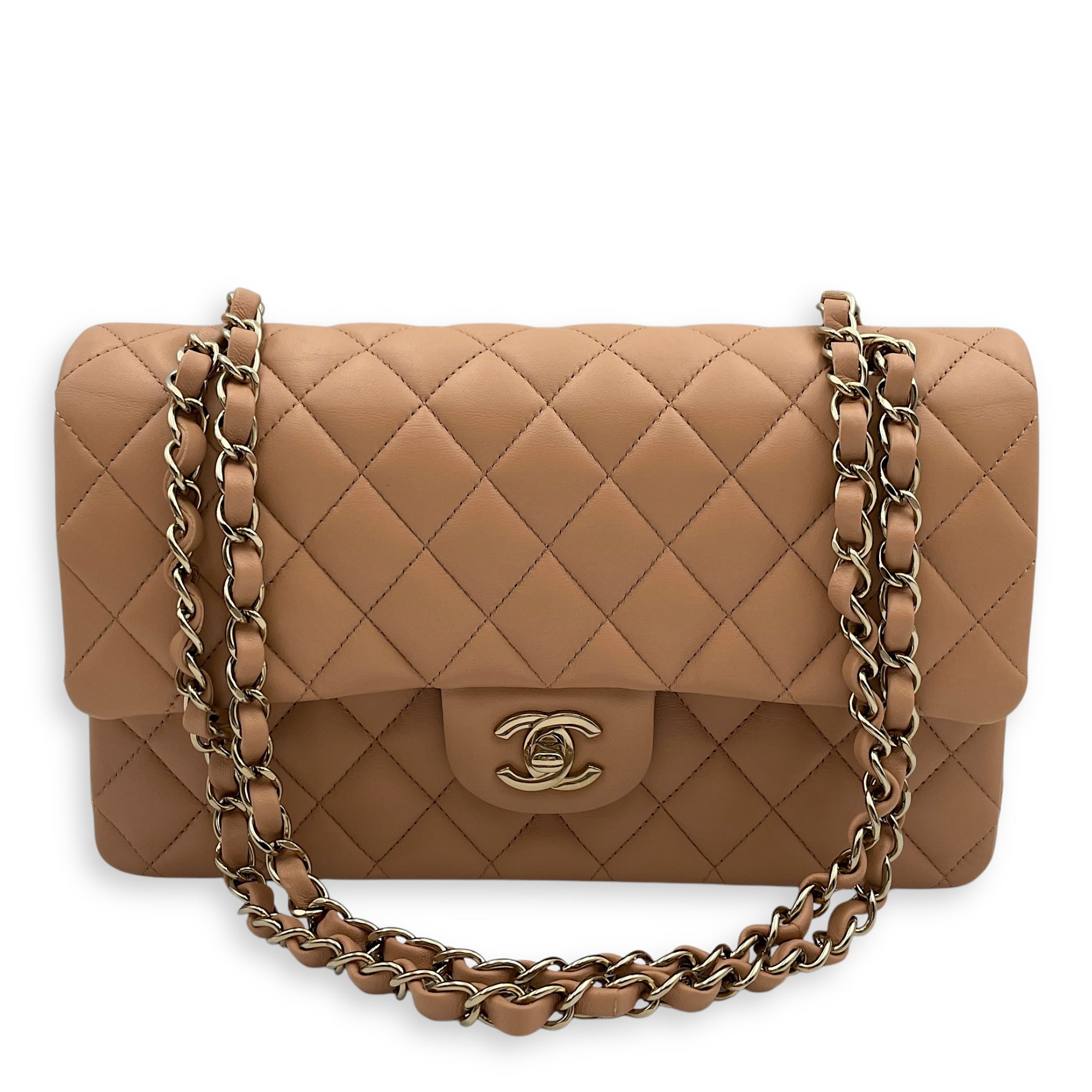 Be the first to review “Classic Double Flap Medium Beige Shoulder Bag in Lambskin, Gold hardware”
