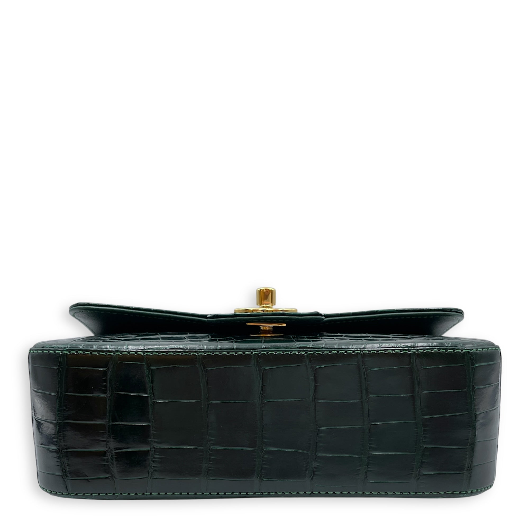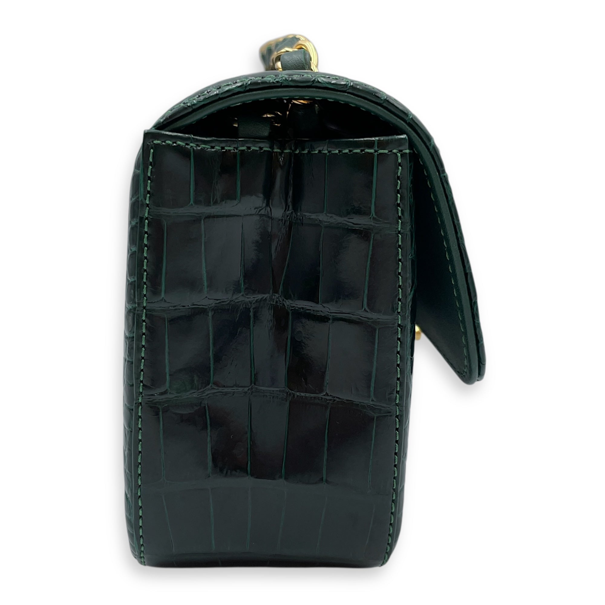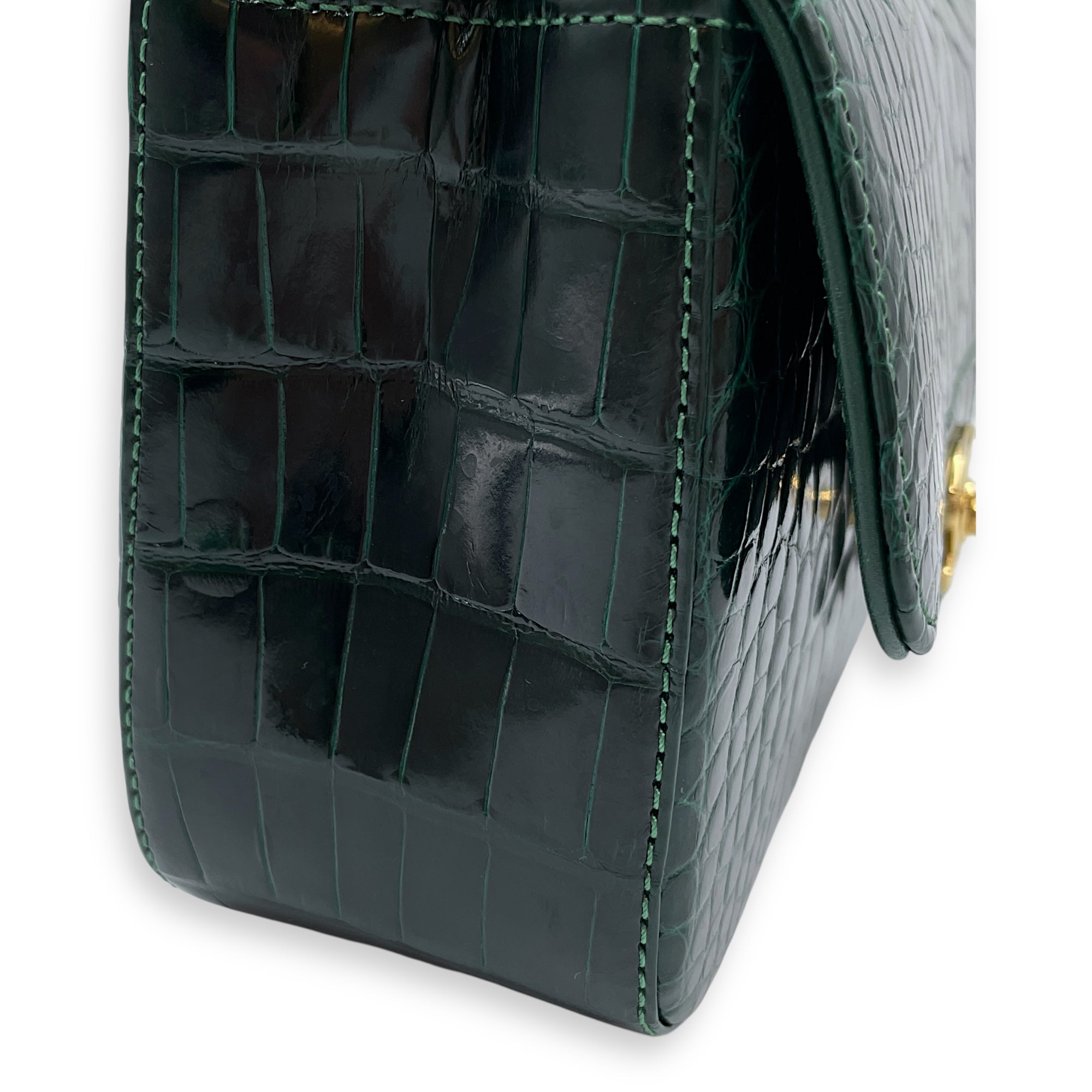 Classic Flap Emerald Green Crossbody Bag in Shiny Alligator, Gold hardware
