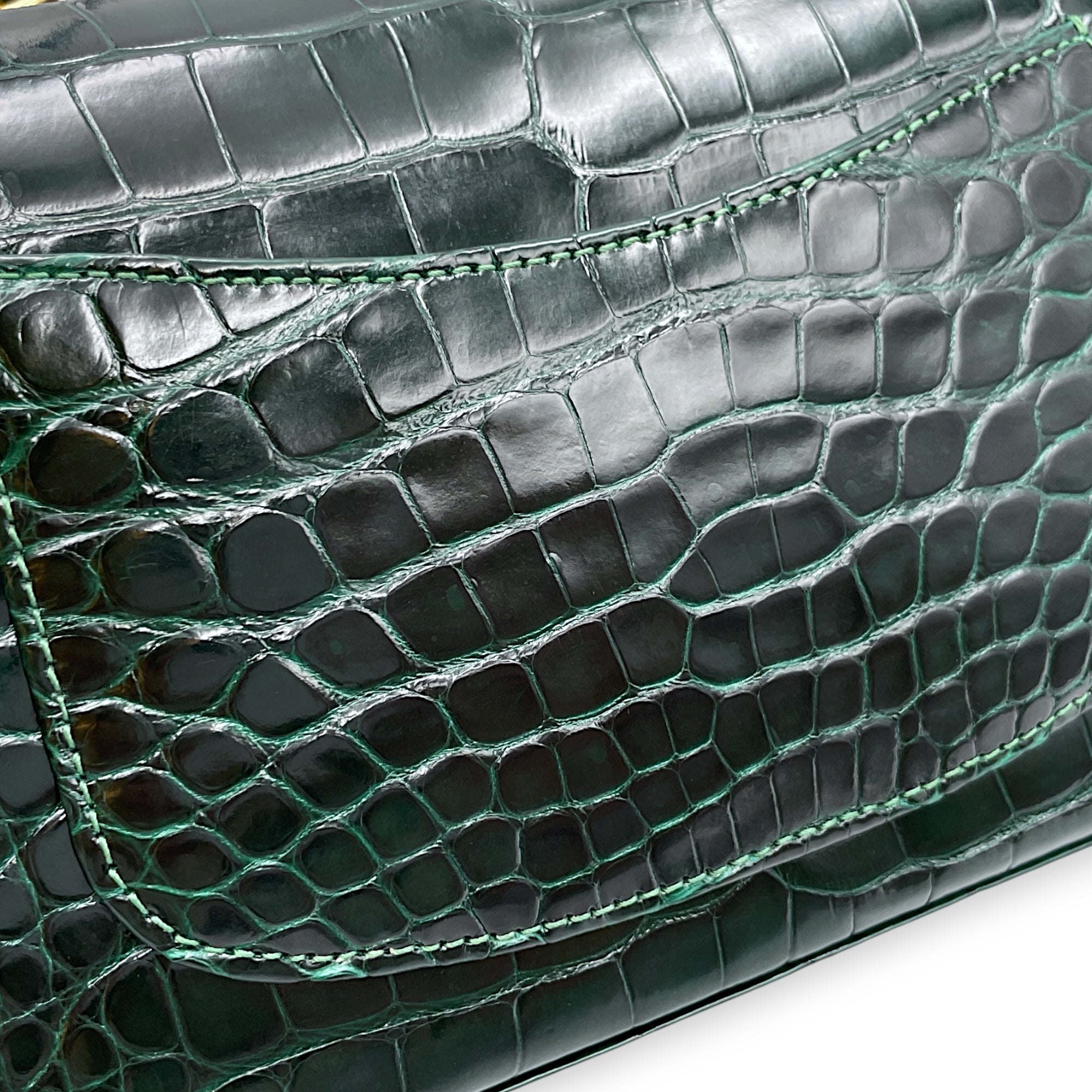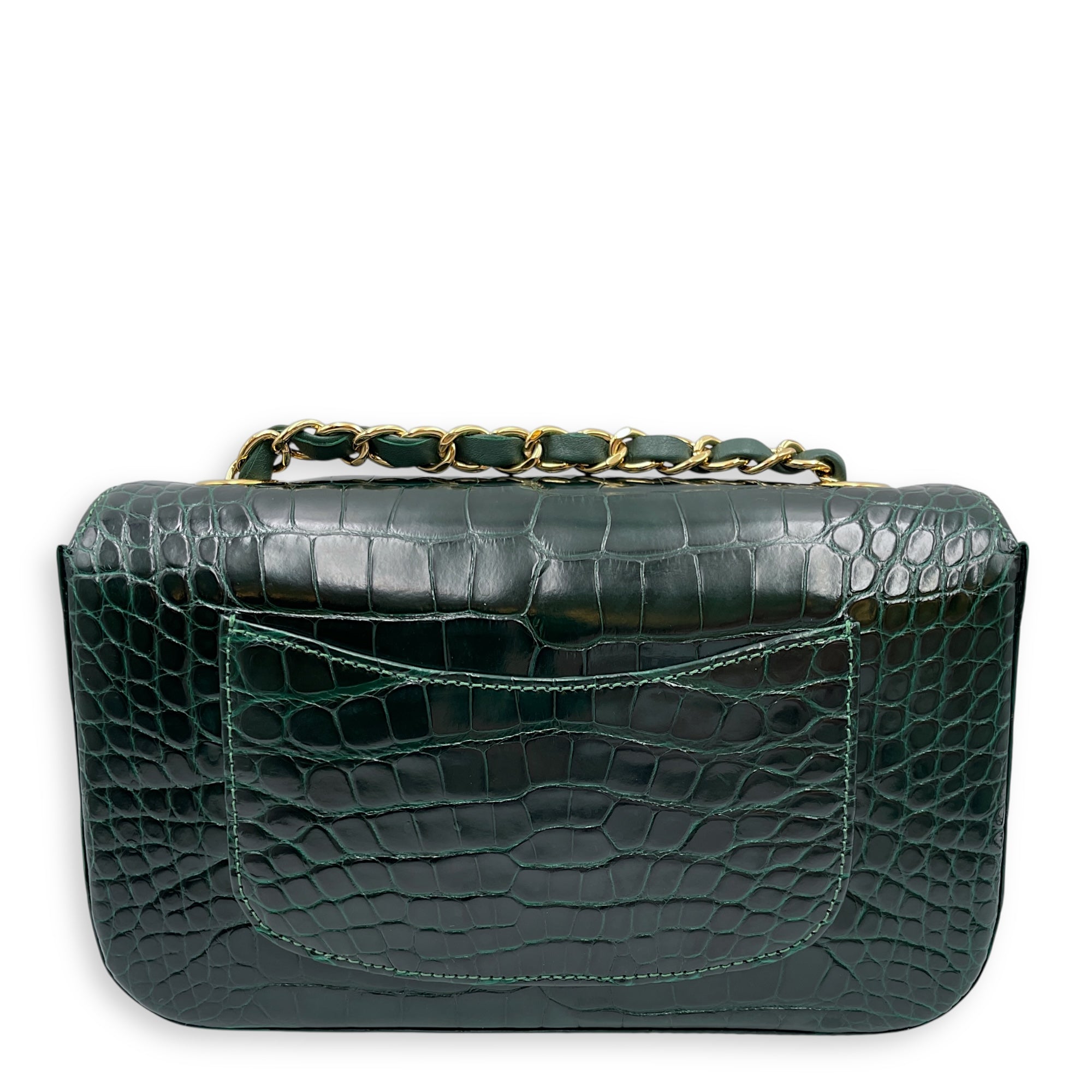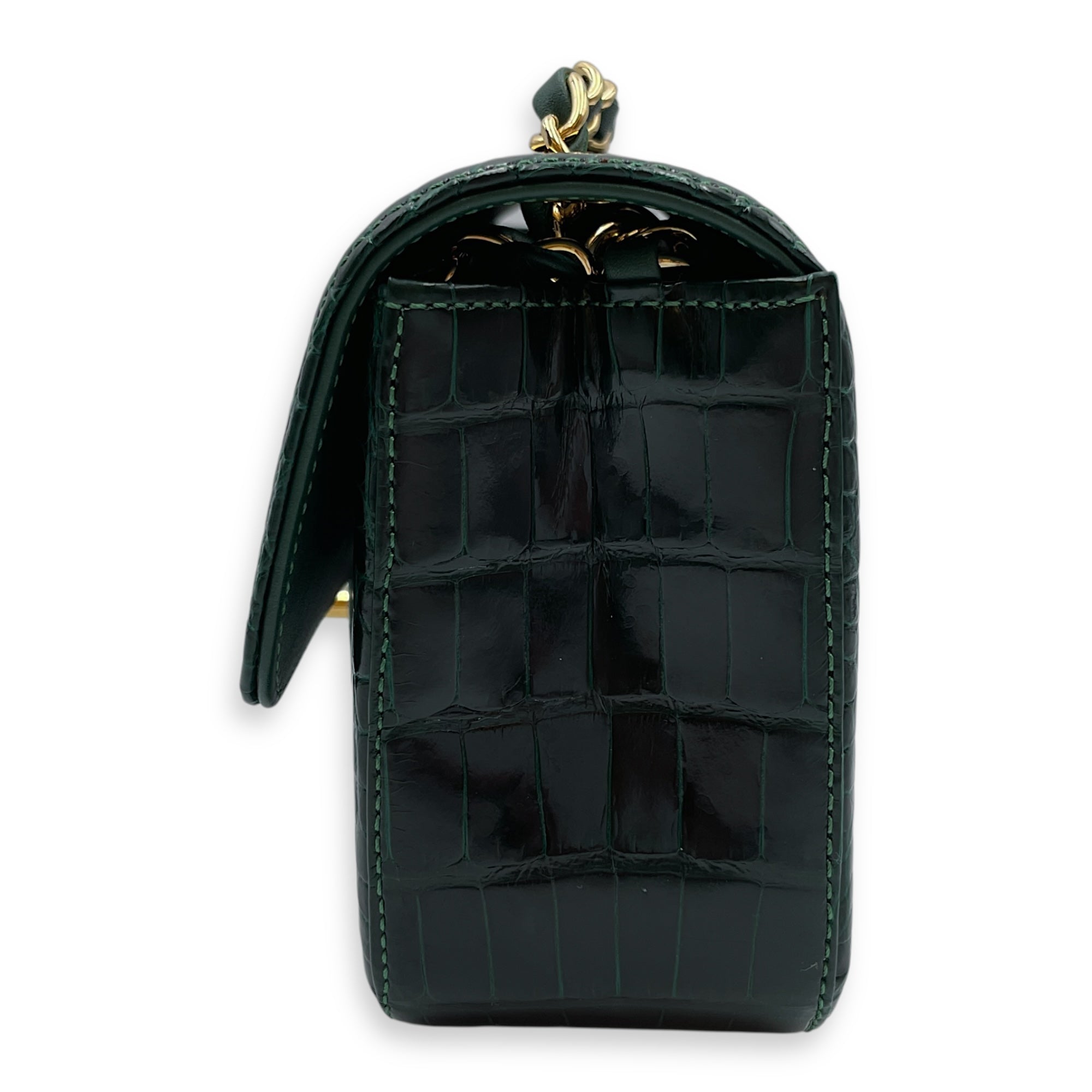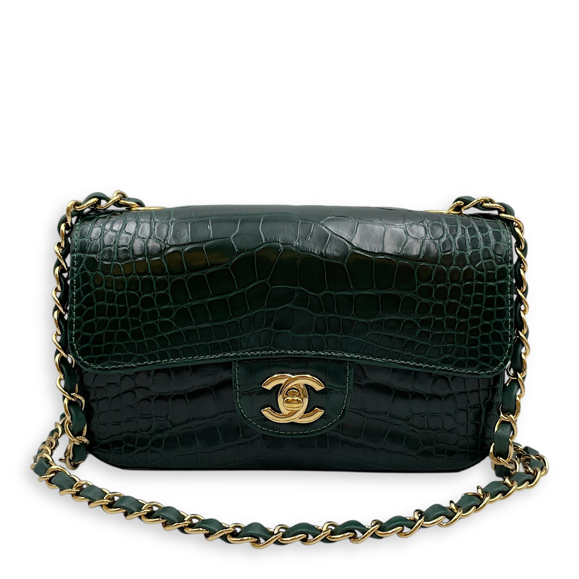 Classic Flap Emerald Green Crossbody Bag in Shiny Alligator, Gold hardware