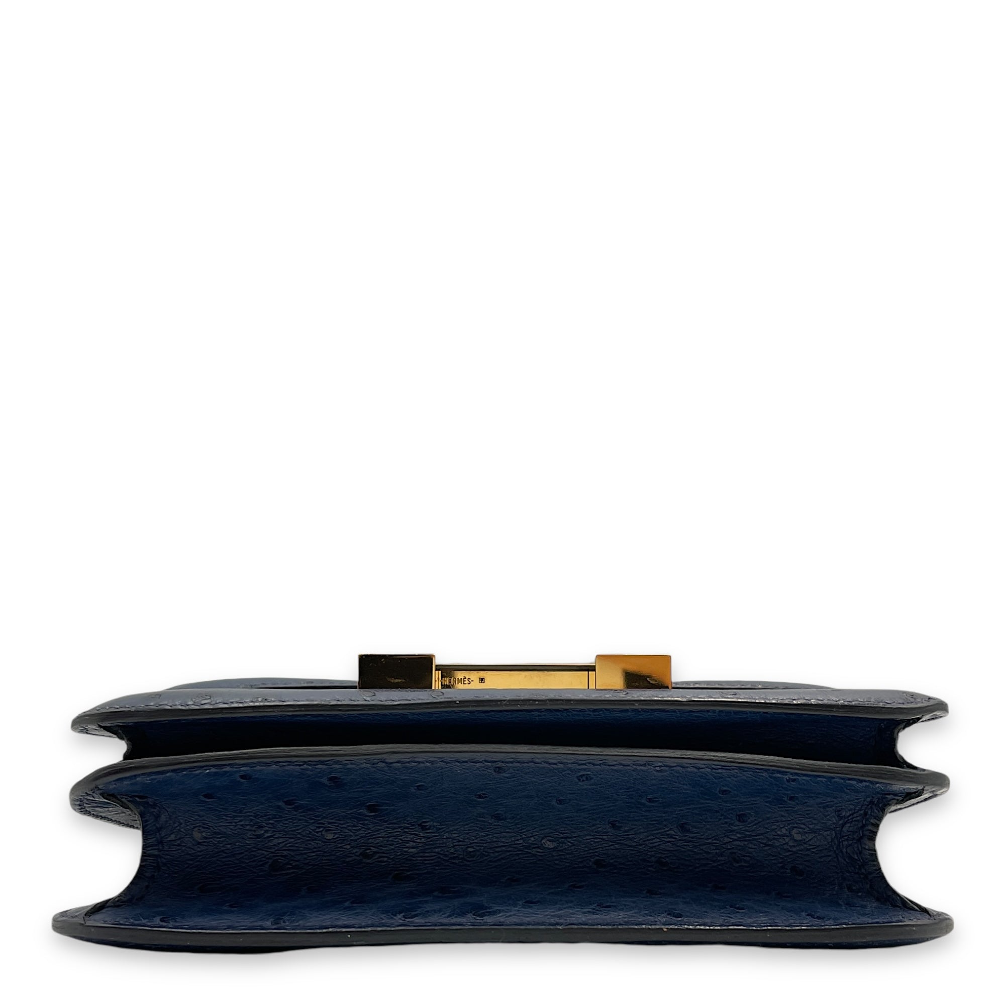 Constance 18 Blue Iris in Ostrich, Gold hardware