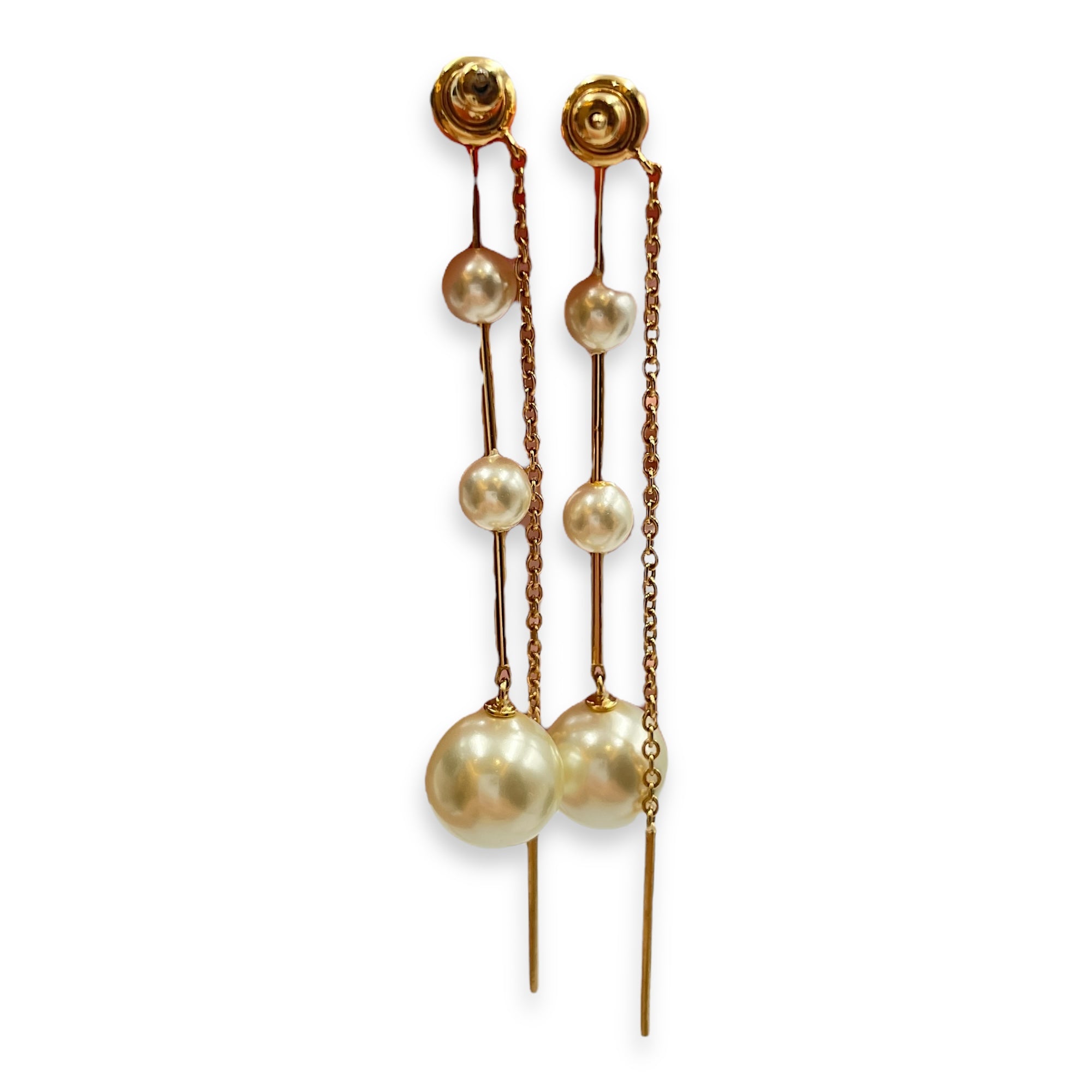 Dior Pearl 3-Ring White Earrings in Pearl, Gold hardware