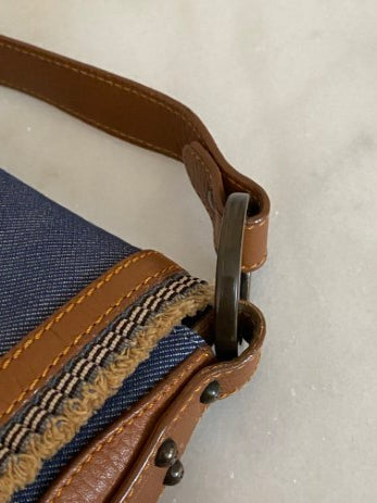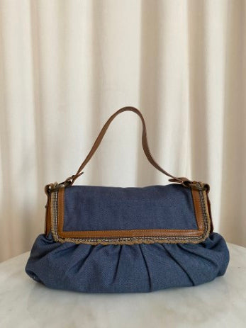 Fendi Bicolor Denim Chef Shoulder Bag W/ Bag Charm
