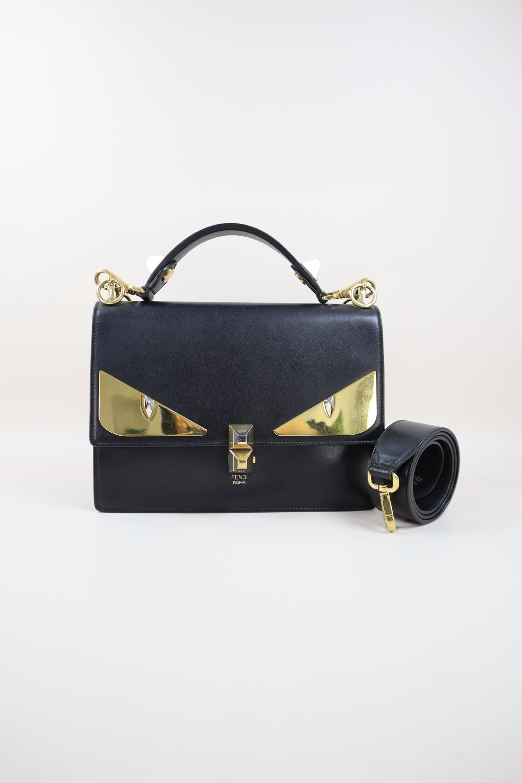 Fendi Black Monster Eye Top Handle Bag with Strap