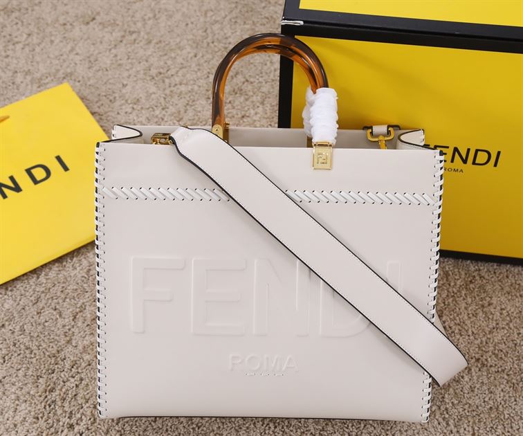 Fendi Sunshine Medium White leather shopper Bag – FB007