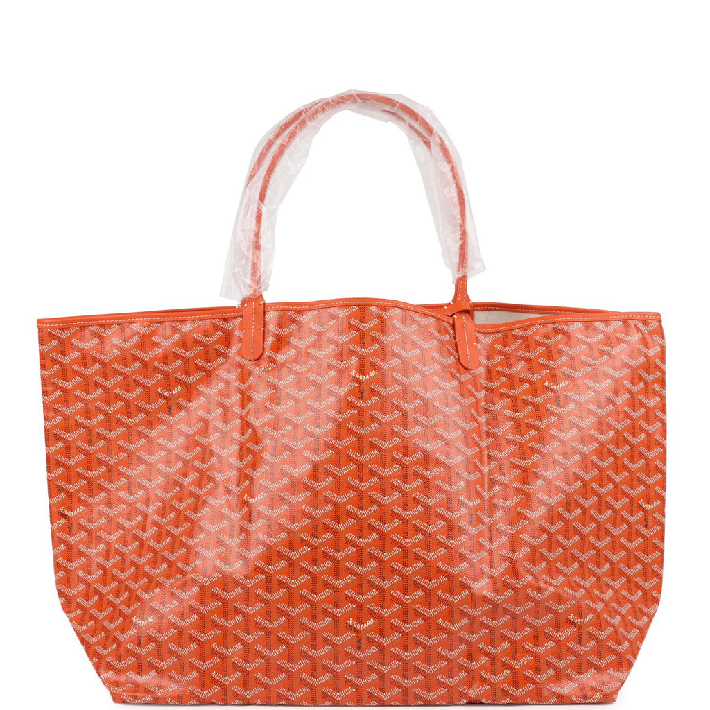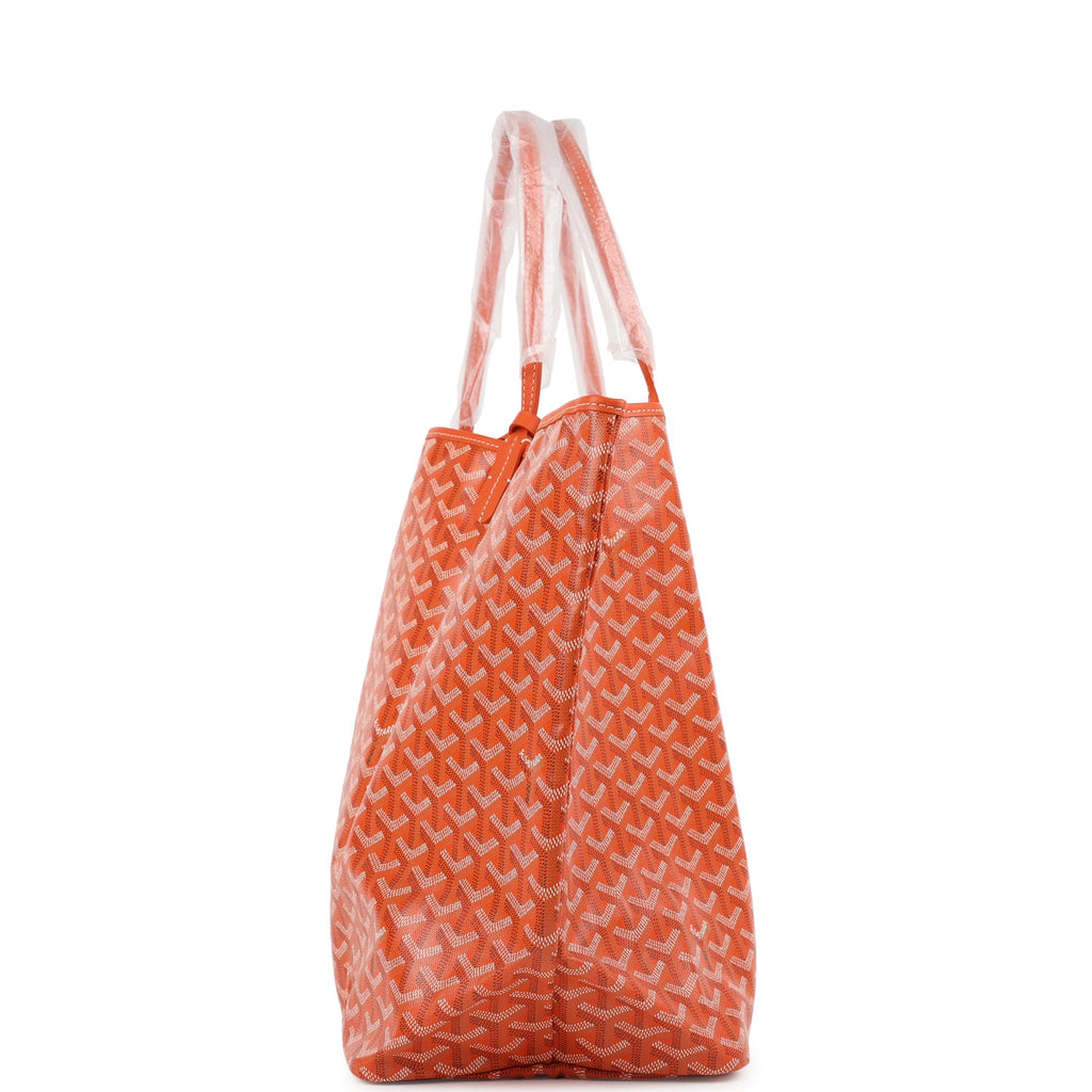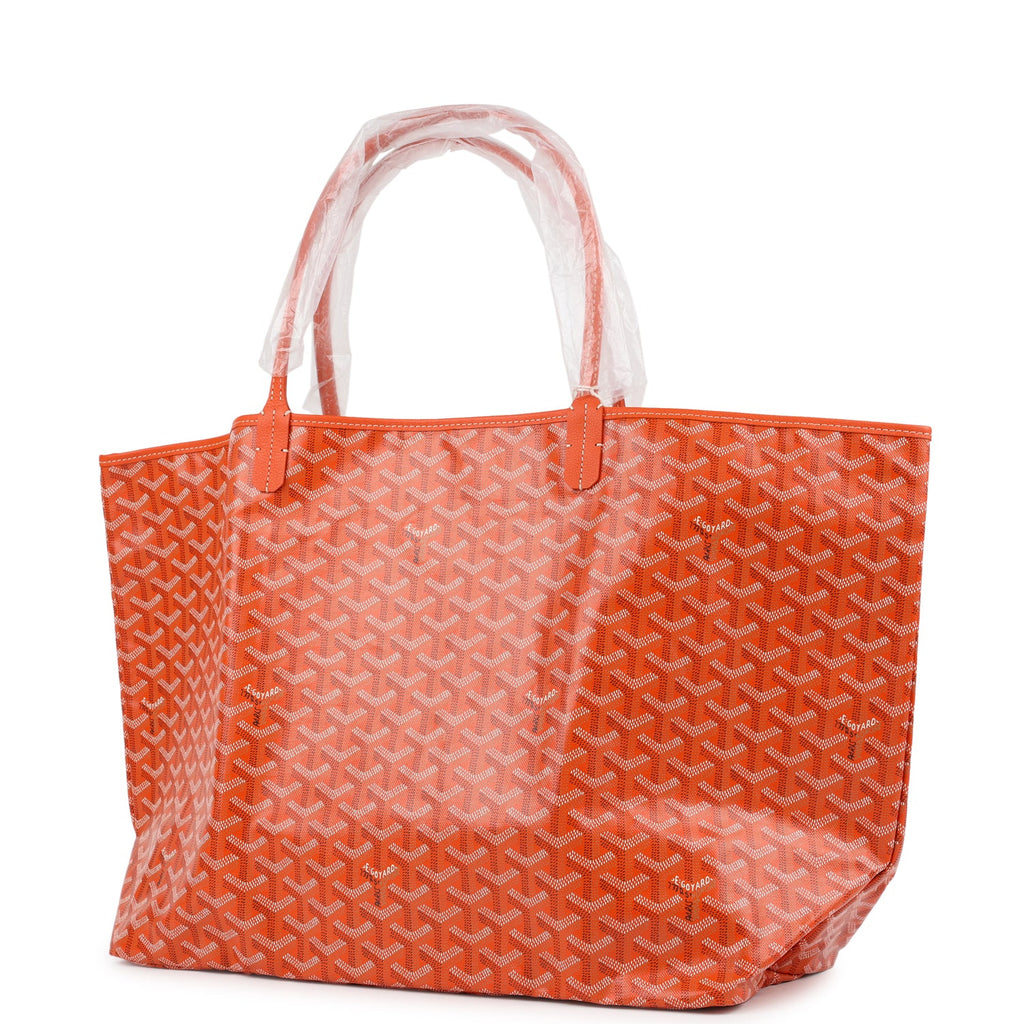 Goyard Goyardine Orange Saint Louis GM Tote Bag Palladium Hardware Shop for an authentic Goyard Goyardine Saint Louis GM Tote Bag in orange with palladium hardware in new and never worn condition at Madison Avenue Couture.