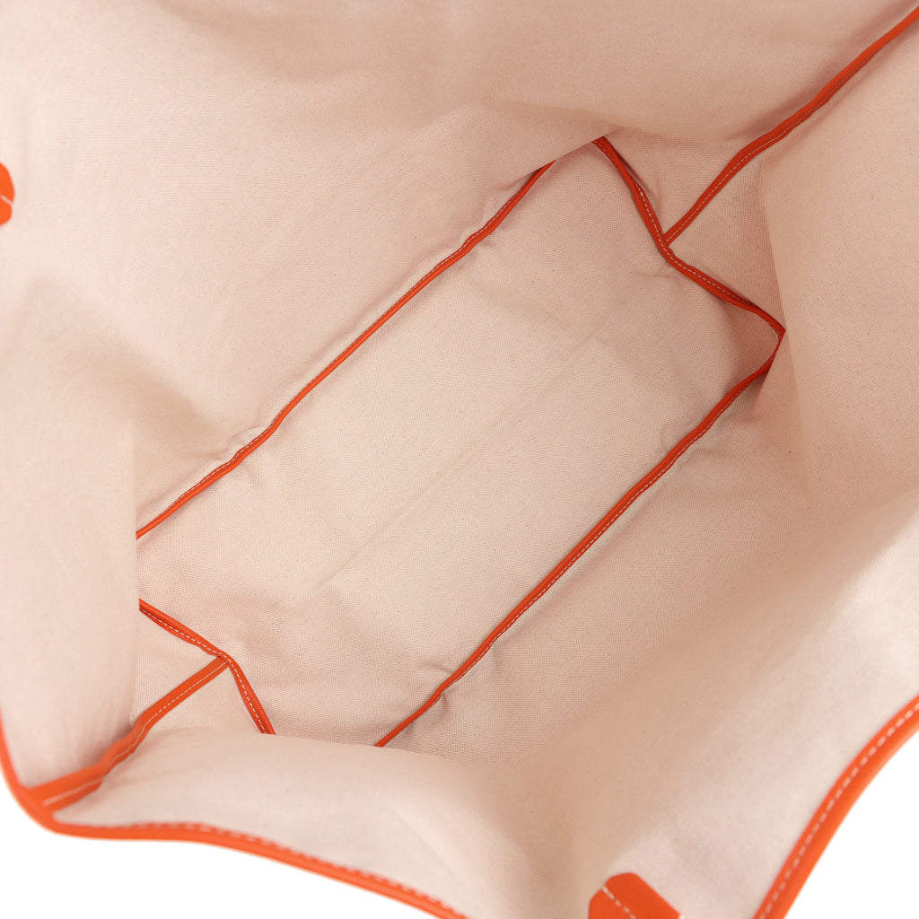 This Goyard Saint Louis Tote GM bag is in orange canvas with palladium hardware and has contrast white stitching, and a matching detachable button closure wallet