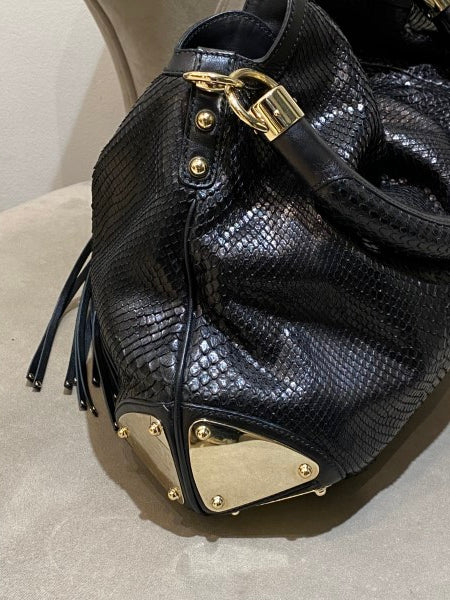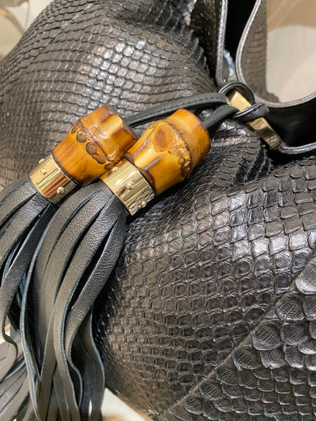 Gucci Black Python Babouska Indy Hobo Bag