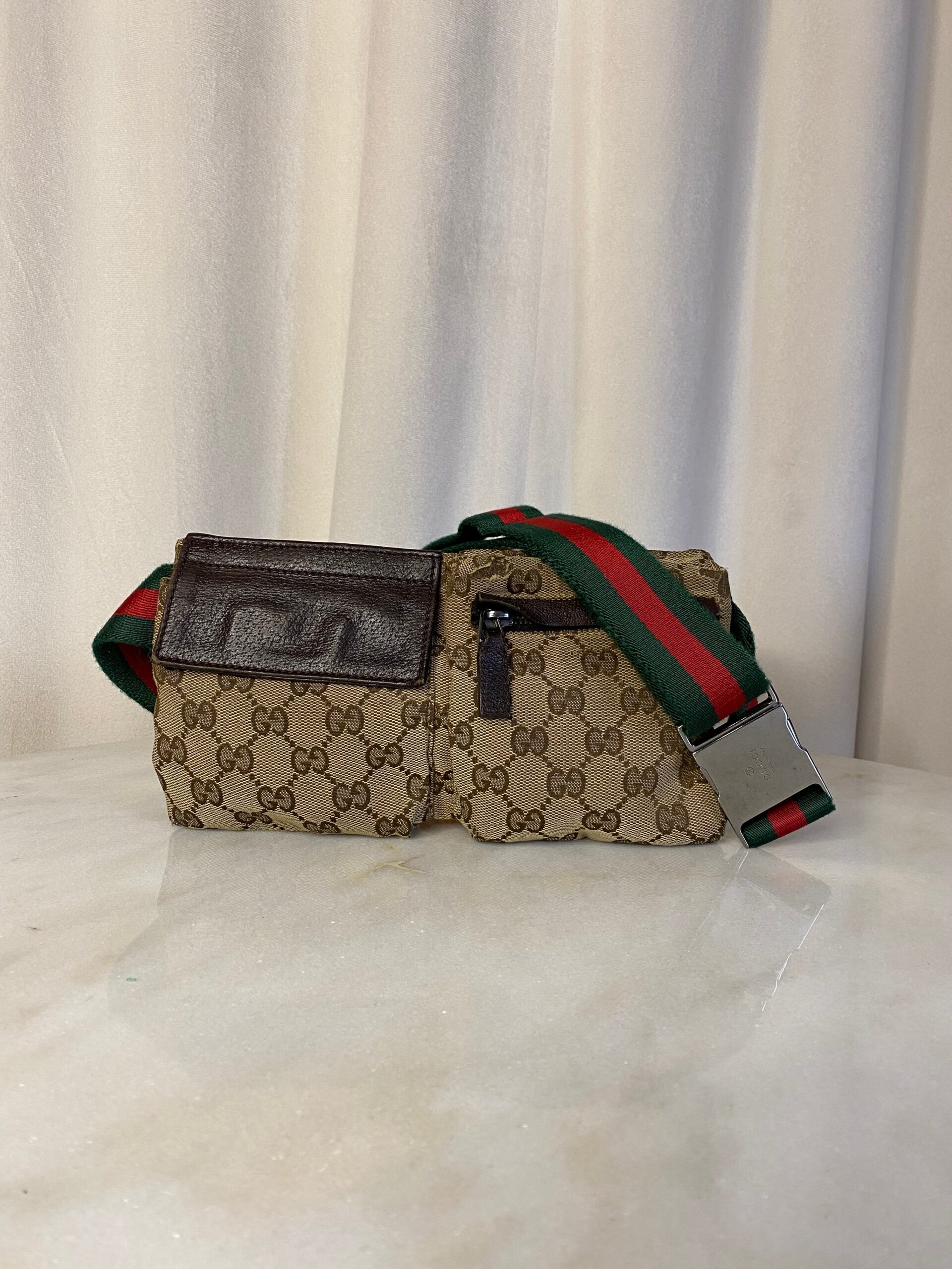 Be the first to review “Gucci Brown GG Double Pocket Belt Bag”