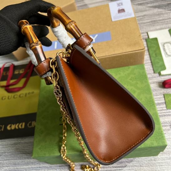 Gucci Diana mini tote bag Camel and ebony GG canvas with crystals – GB174