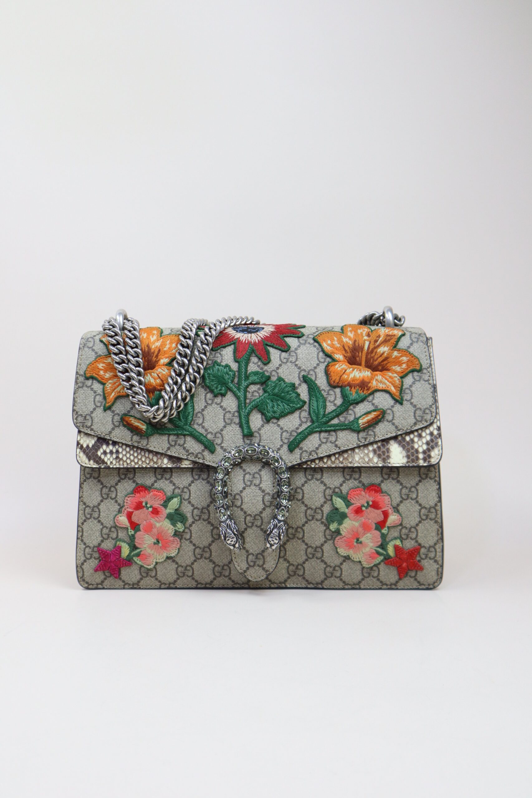 Gucci Ebony GG Medium Dionysus Bee/Floral Supreme Crystal Shoulder Bag