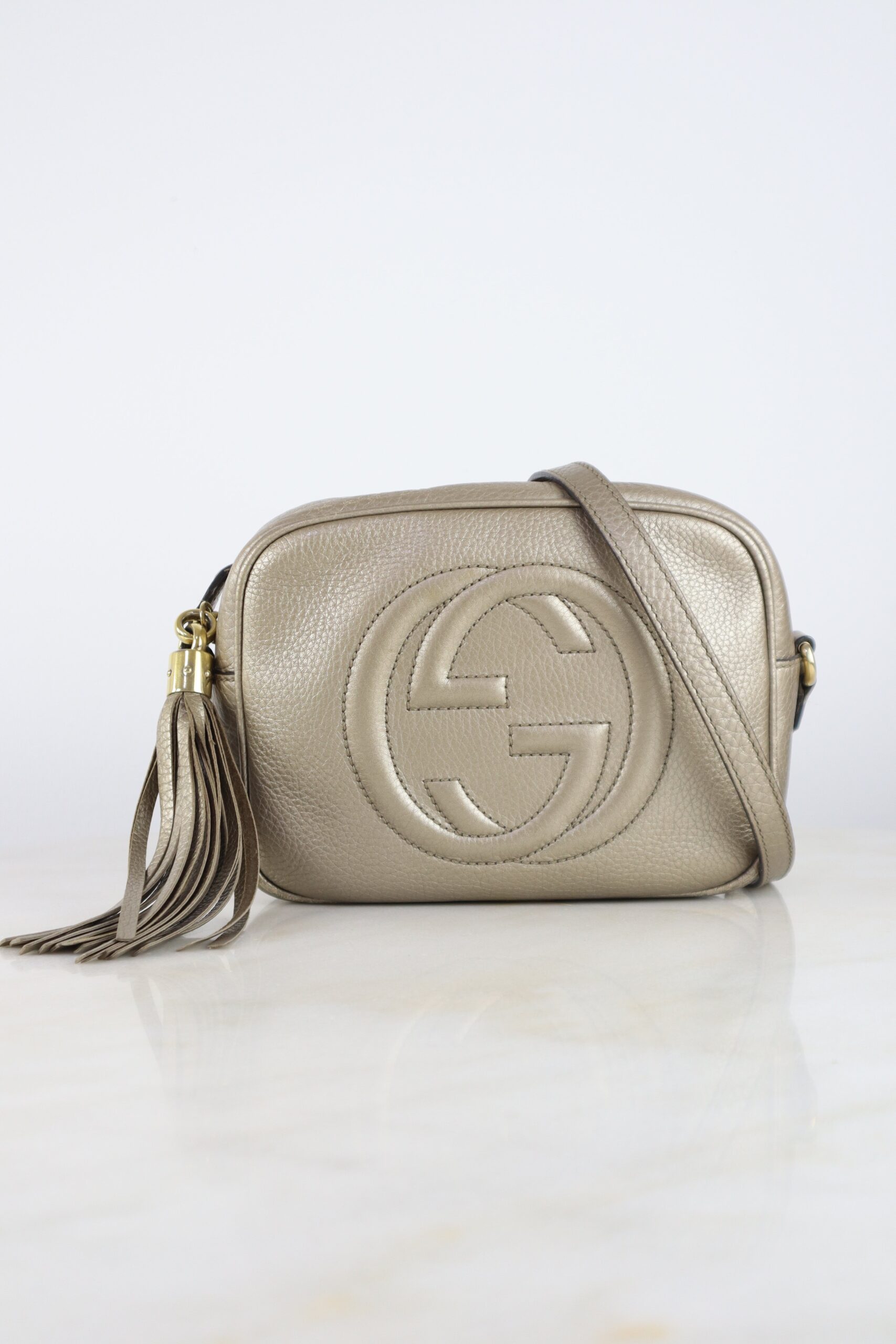 Be the first to review “Gucci Metallic Pebbled Small Soho Camera Crossbody Bag”