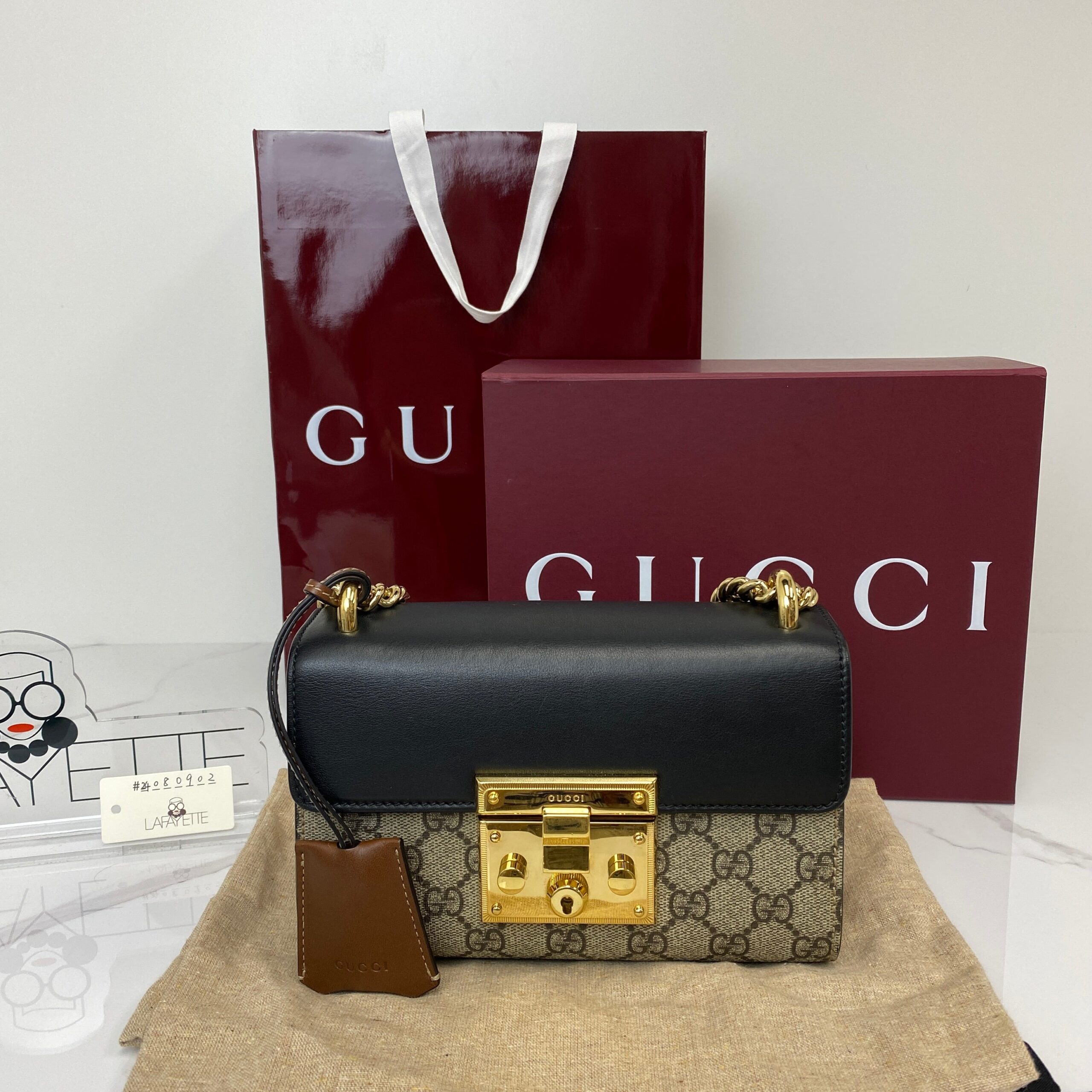 The Gucci Padlock Small Shoulder Bag in black GG Supreme canvas is the epitome of versatile luxury. Its structured design and adjustable strap make it perfect for both day and evening wear. Whether paired with a tailored blazer or a casual outfit, this bag adds a sophisticated touch to any ensemble.