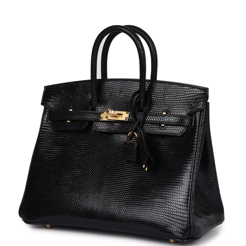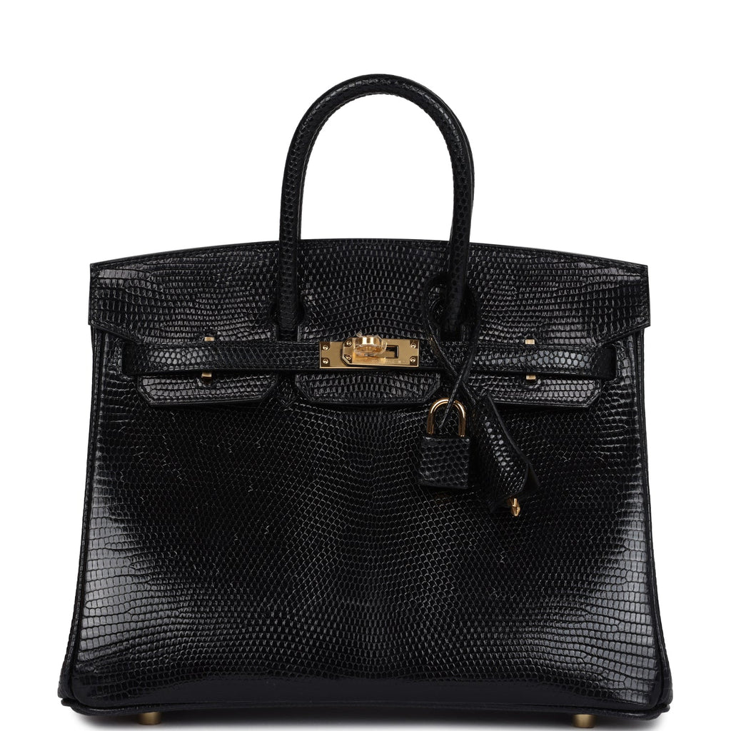 Hermes Birkin 25 Black Shiny Varanus Niloticus Lizard Gold Hardware Shop for an authentic Hermes Birkin 25 in Black Varanus Niloticus Lizard leather with gold hardware in never worn condition at Madison Avenue Couture.