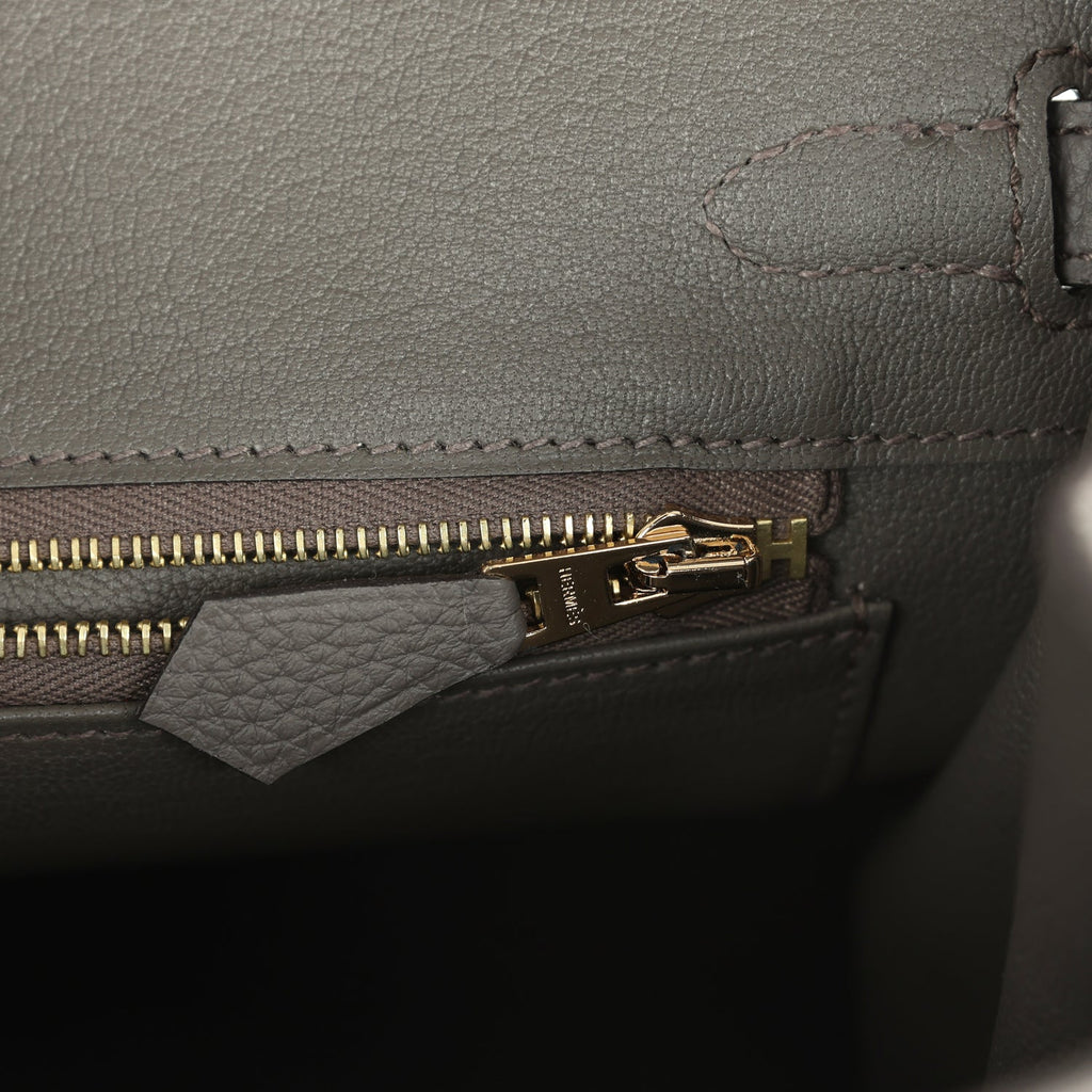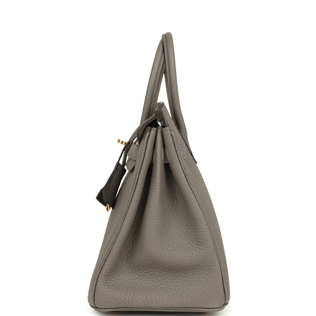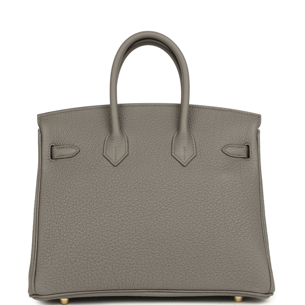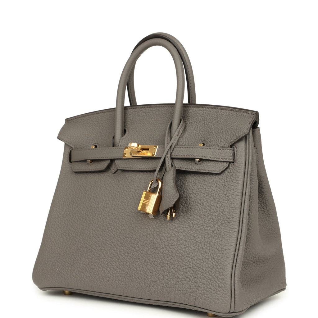 Hermes Birkin 25 Etain Togo Gold Hardware Shop for an authentic Hermes Birkin 25 in Gris Etain togo leather with gold hardware in new and never worn condition at Madison Avenue Couture.