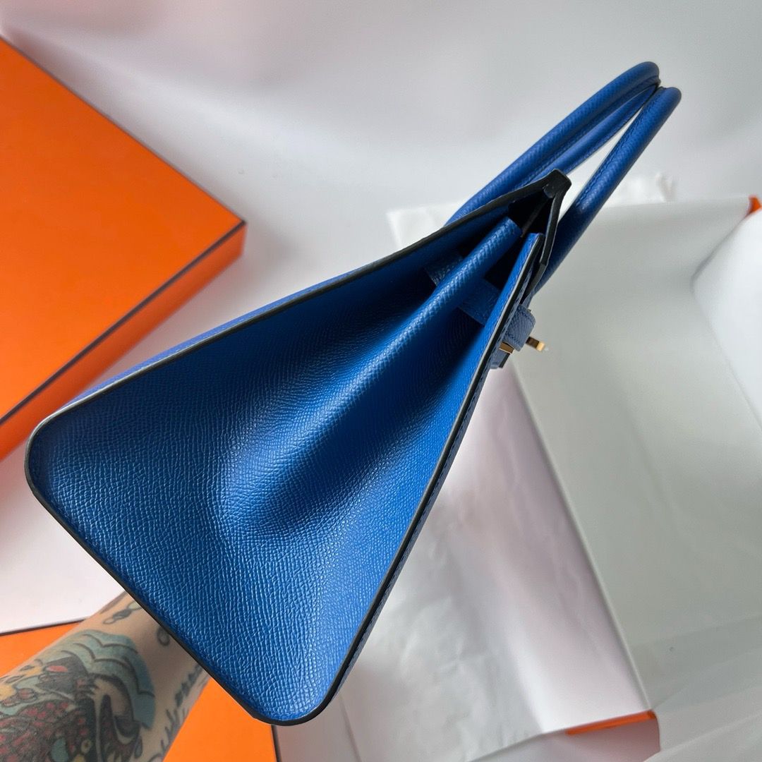 Hermes Birkin 25 Sellier Handmade Bag In Blue France Epsom Calfskin