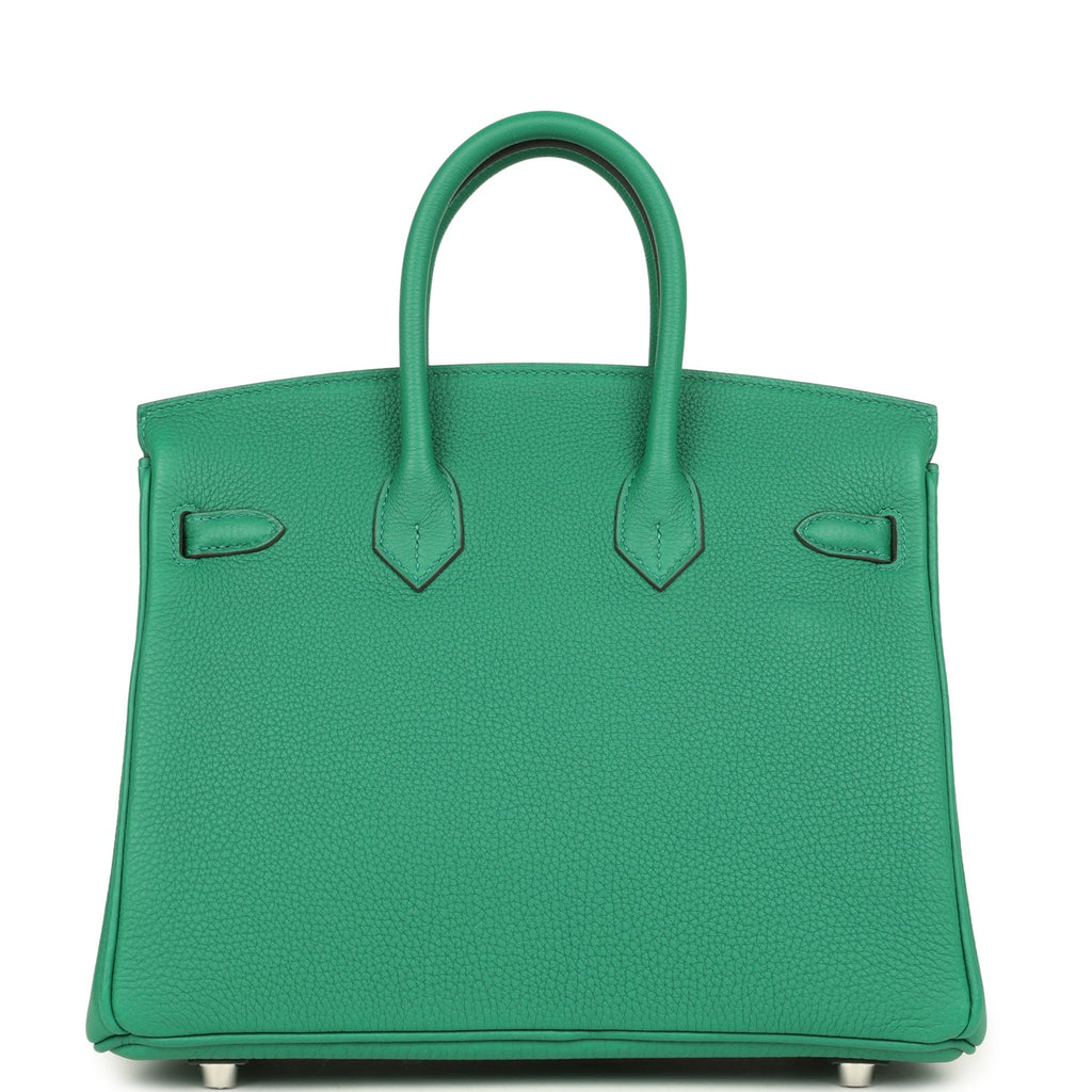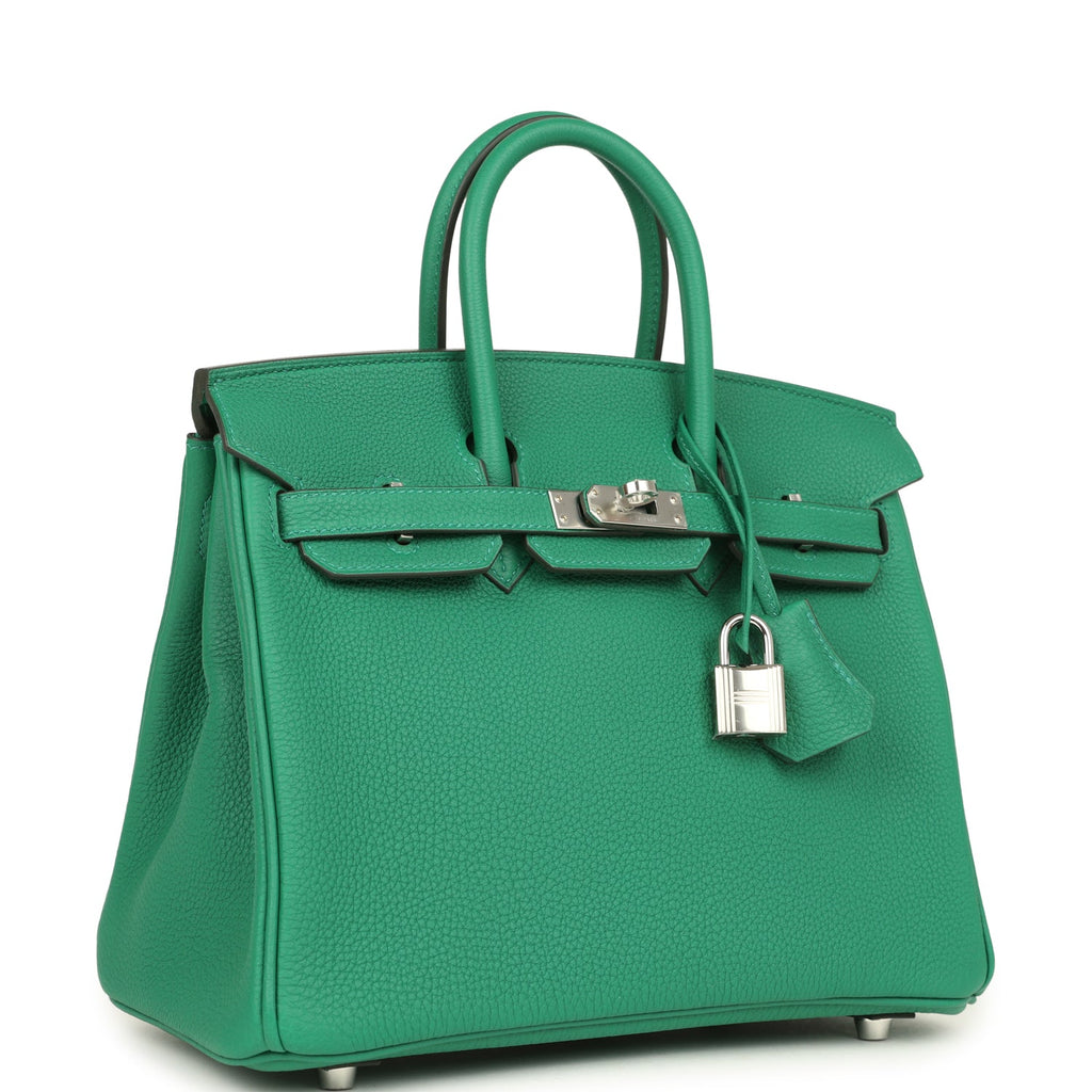 Hermes Birkin 25 Vert Vertigo Togo Palladium Hardware Shop for an authentic Hermes Birkin 25 in Vert Vertigo togo leather with palladium hardware in new and never worn condition at Madison Avenue Couture.