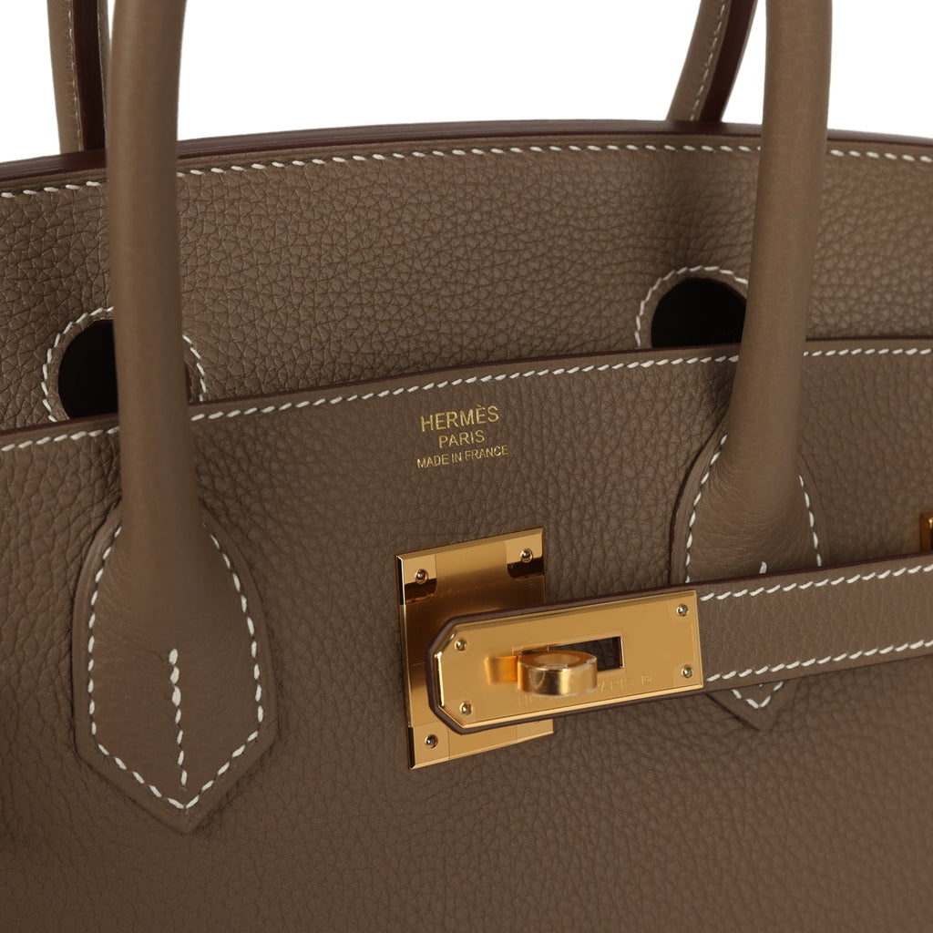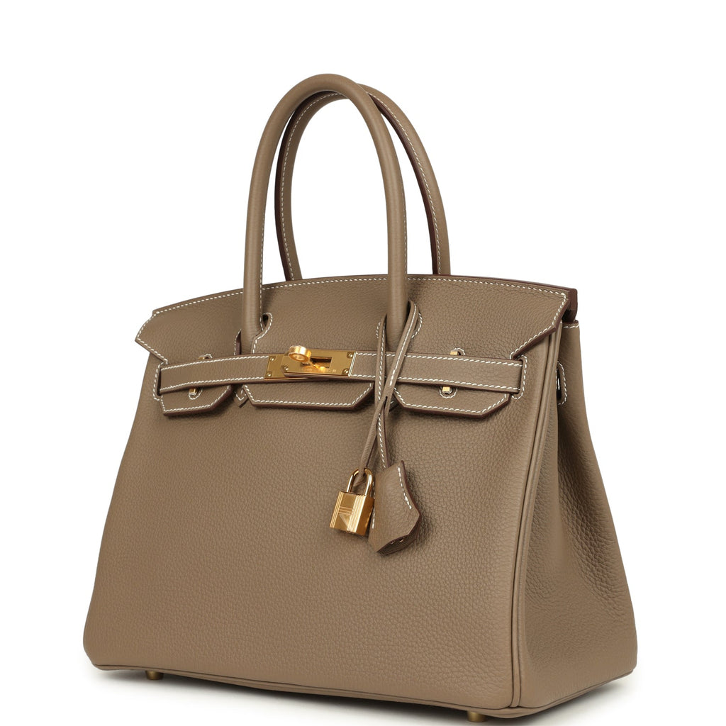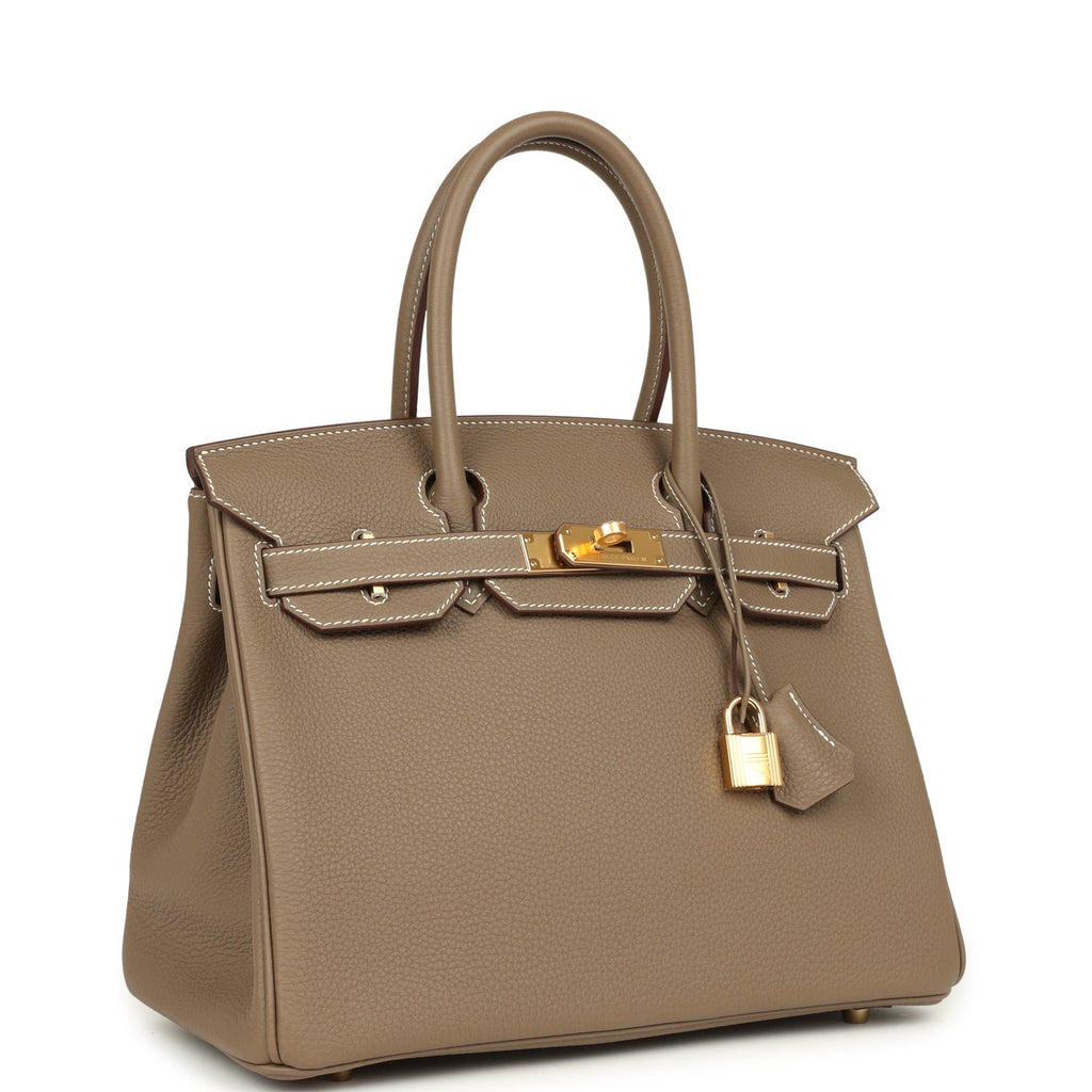 Hermes Birkin 30 Etoupe Togo Gold Hardware Shop for an authentic Hermes Birkin 30 in Etoupe togo leather with gold hardware in new and never worn condition at Madison Avenue Couture.