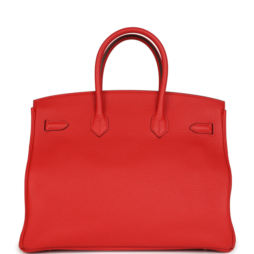 Hermes Birkin 35 Rouge Tomate Togo Palladium Hardware Shop for an authentic Hermes Birkin 35 in Rouge Tomate togo leather with palladium hardware in new and never worn at Madison Avenue Couture.