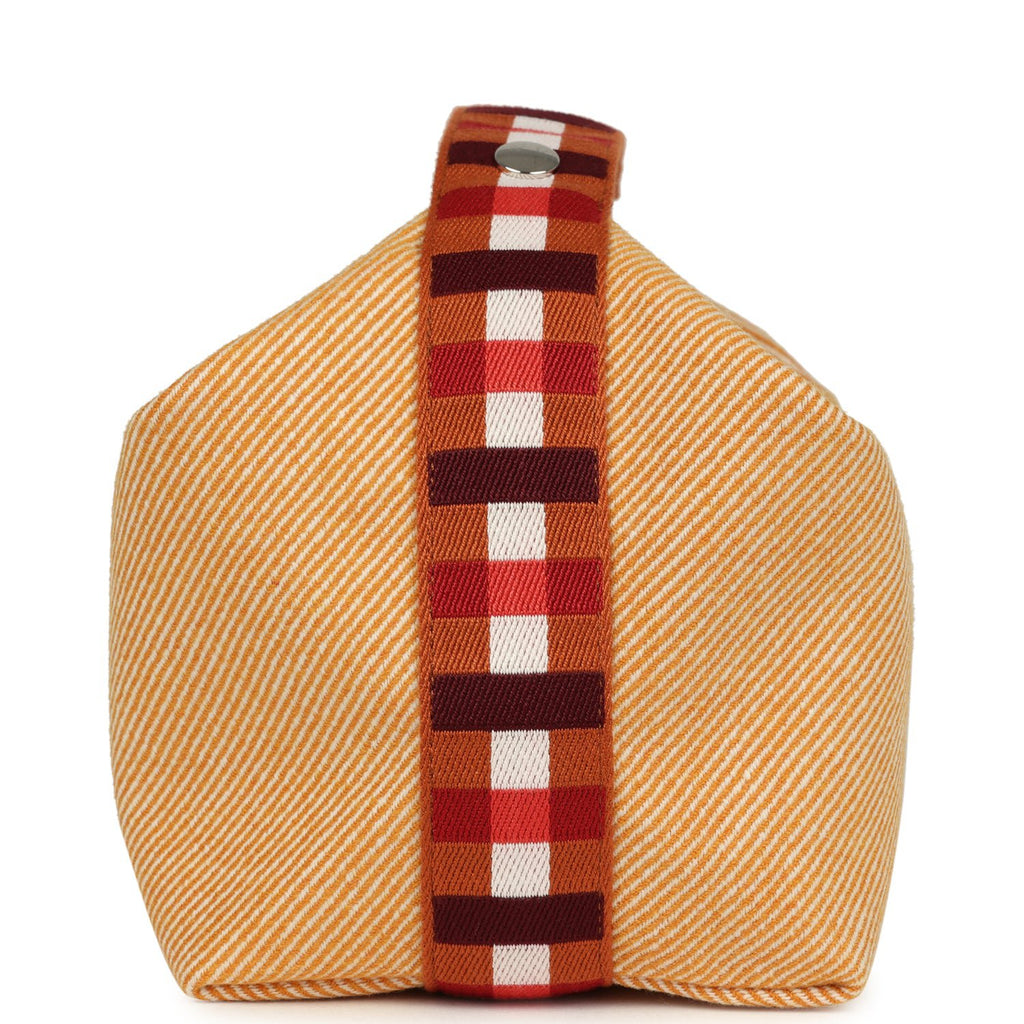 This Bride A Brac Carre Case GM is of Fauve bi-color wool with palladium hardware, features large pouch, anti-stain waterproof lining, embroidered “H” on the front, tonal stitching, zippered closure, snap closure top handle.The interior is lined in beige classic herringbone lining and has three interior pockets.Origin: FranceCondition: New and never worn