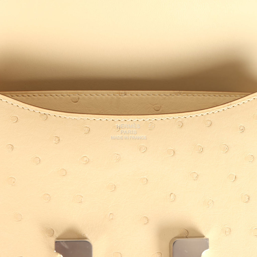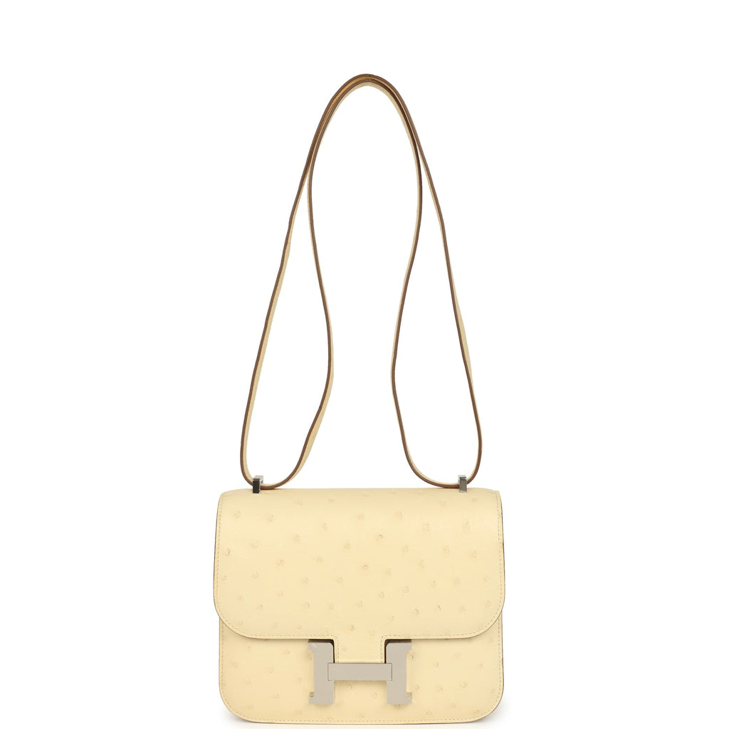 Hermes Constance 18 Vanille Ostrich Palladium Hardware Shop for an authentic Hermes Constance 18 in Vanille ostrich with palladium hardware in new and never worn condition at Madison Avenue Couture.