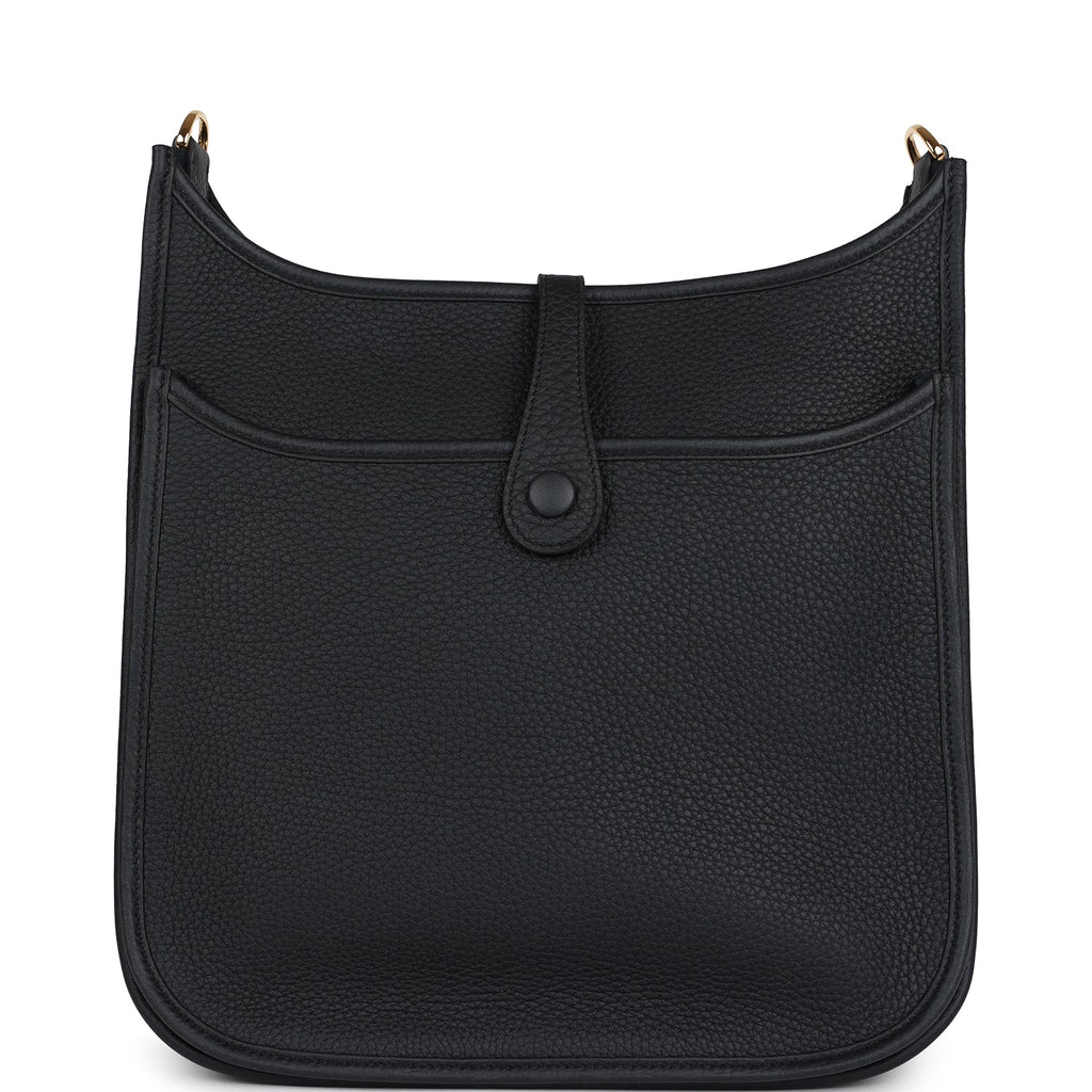 Hermes Evelyne III PM Black Clemence Gold Hardware Shop for an authentic Hermes Evelyne III PM in Black clemence leather with gold hardware in new and never worn condition at Madison Avenue Couture.