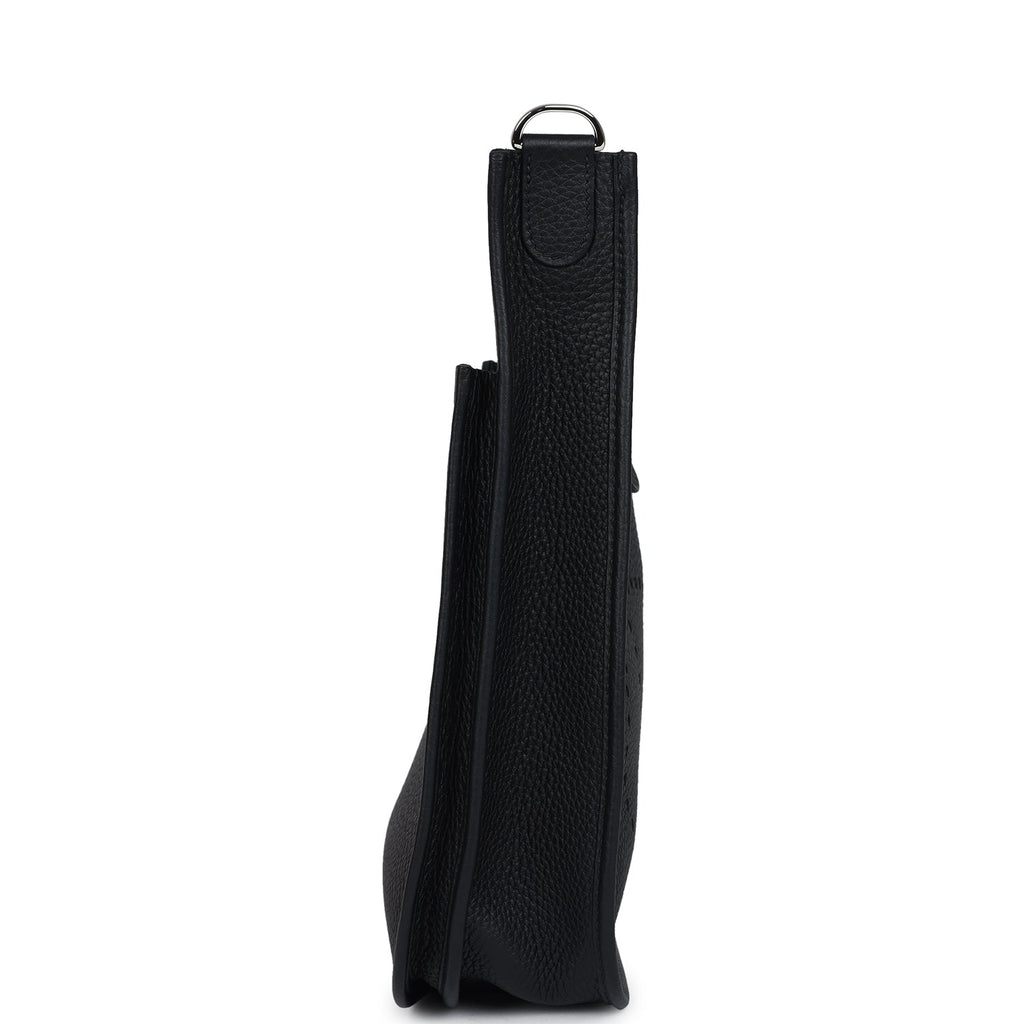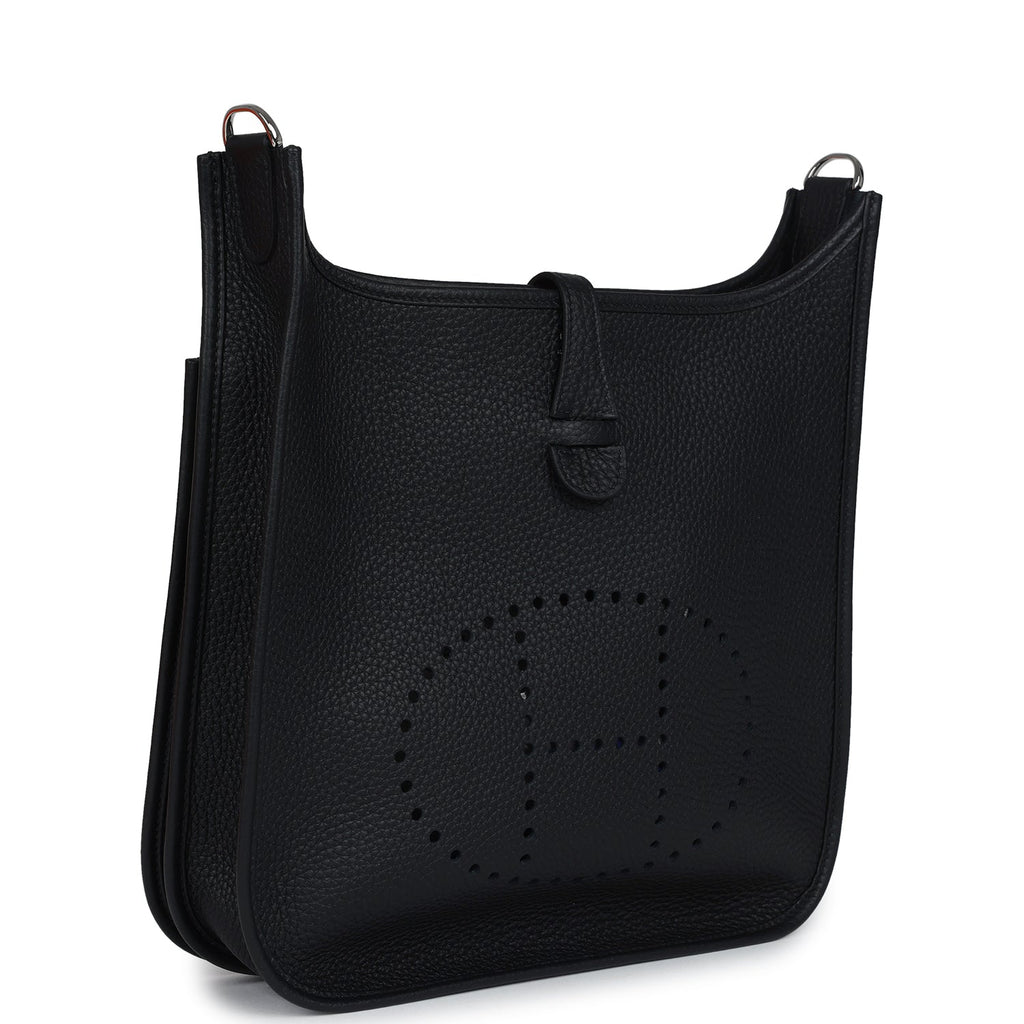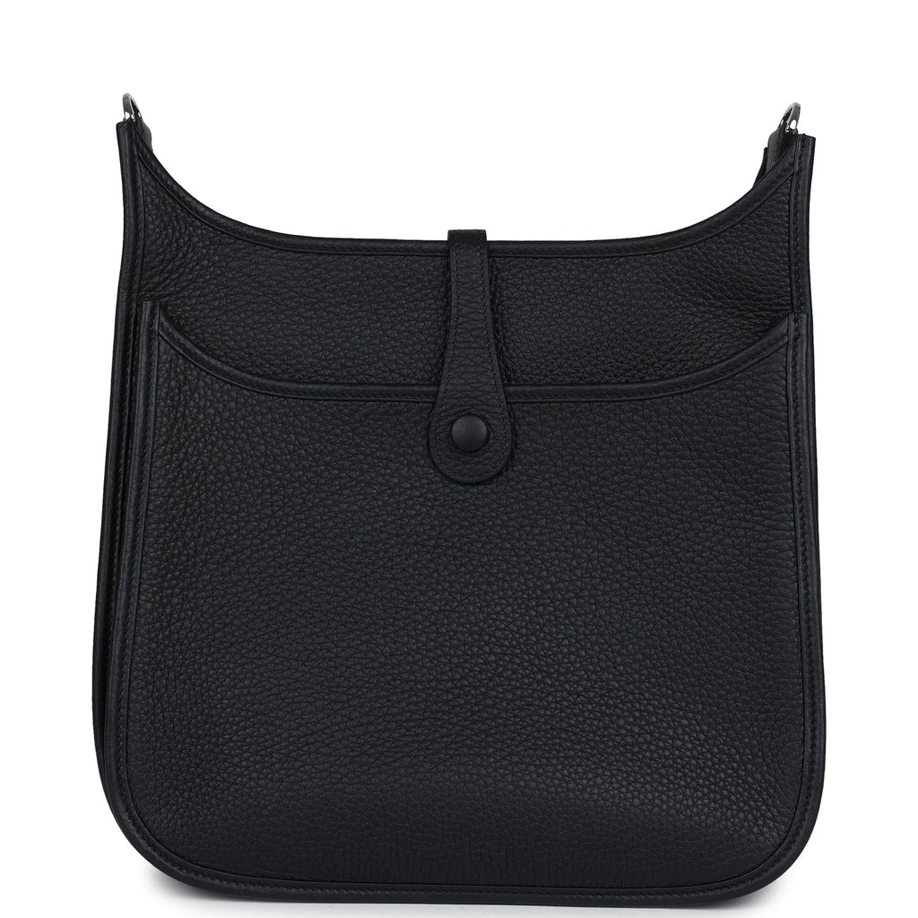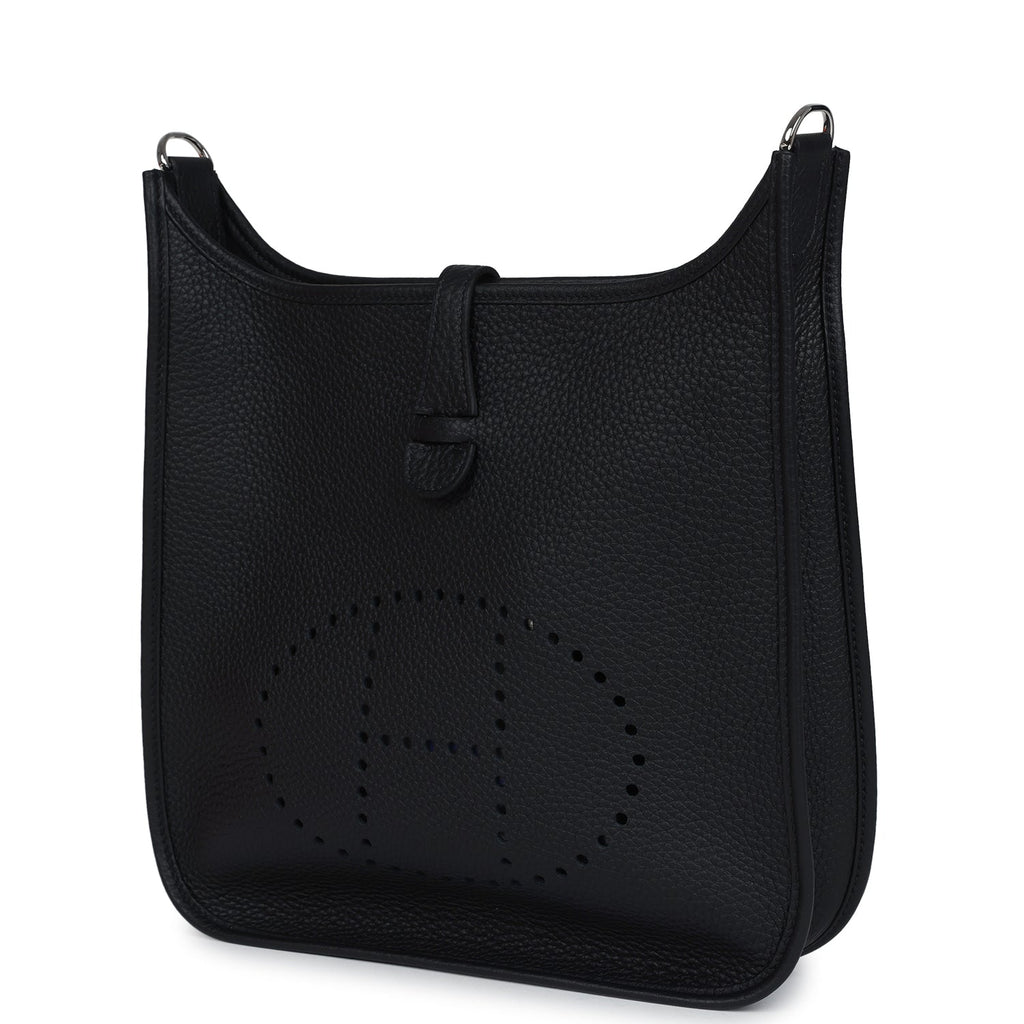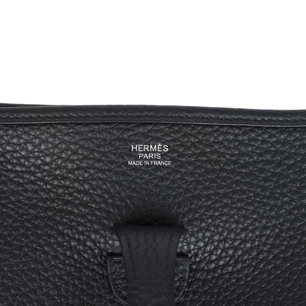Hermes Evelyne III PM Black Clemence Palladium Hardware Shop for an authentic Hermes Evelyne III PM in Black clemence leather with palladium hardware in new and never worn condition at Madison Avenue Couture.