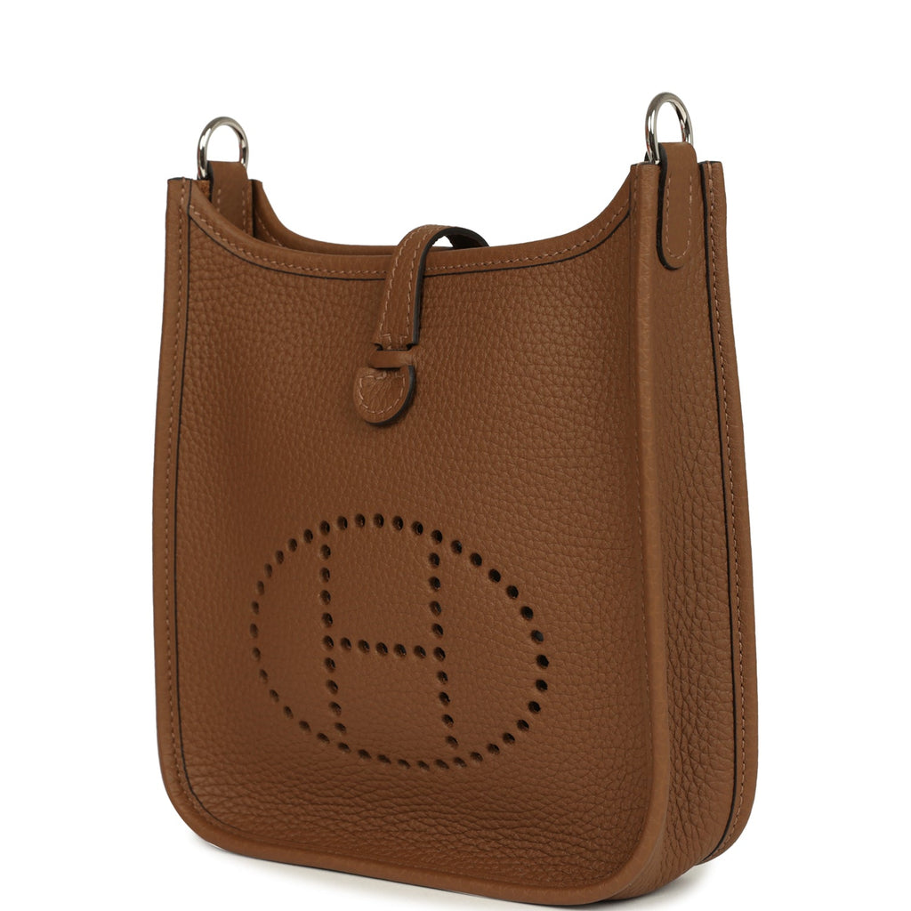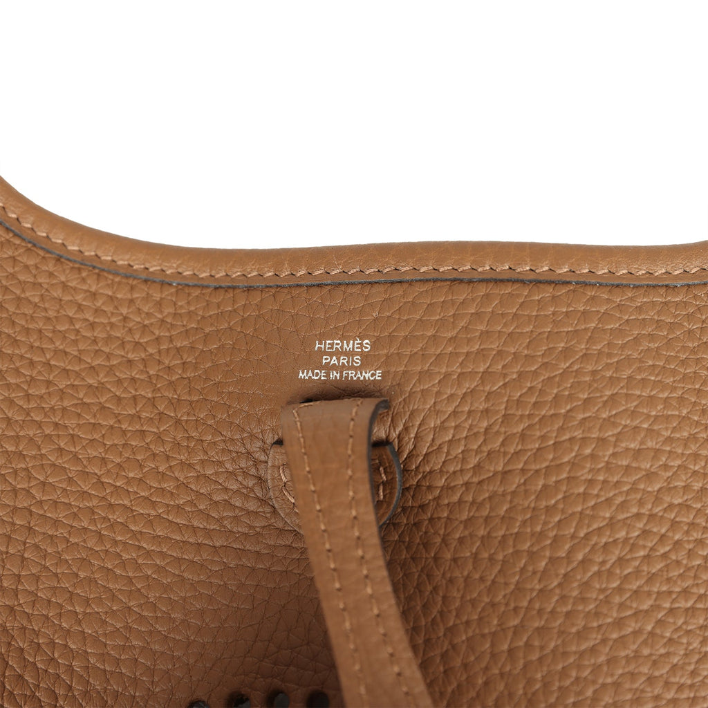 Hermes Evelyne TPM Alezan Clemence Palladium Hardware Shop for an authentic Hermes Evelyne TPM in Alezan clemence leather with palladium hardware in new and never worn condition at Madison Avenue Couture.
