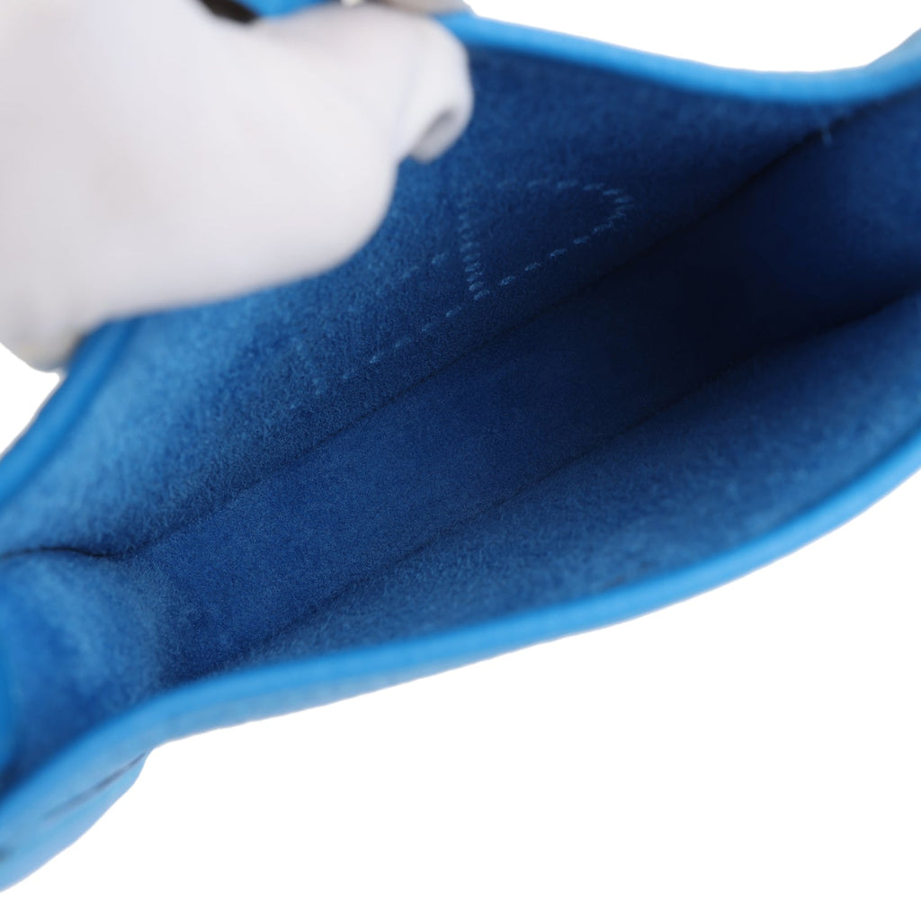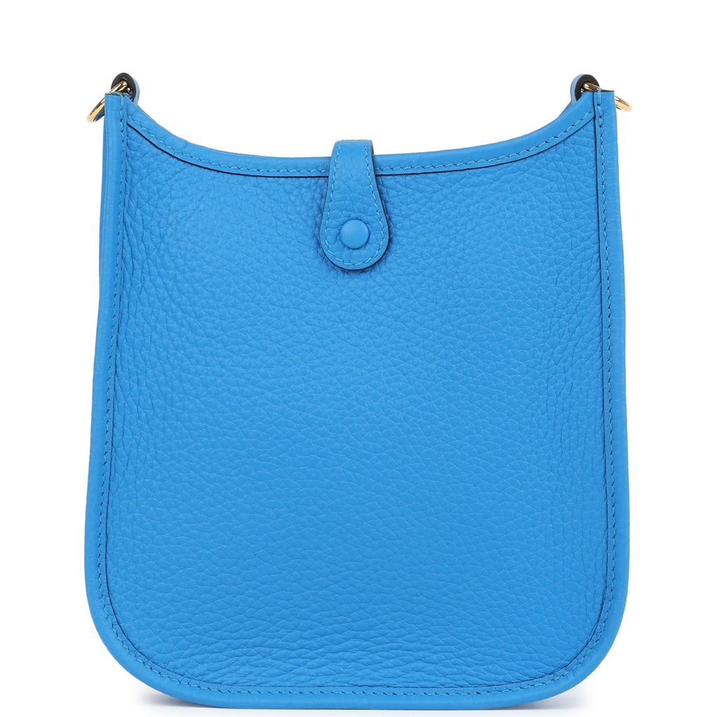 Hermes Evelyne TPM New Bleu Hydra Clemence Gold Hardware Shop for an authentic Hermes Evelyne TPM in New Bleu Hyrda clemence leather with gold hardware in new and never worn condition at Madison Avenue Couture.