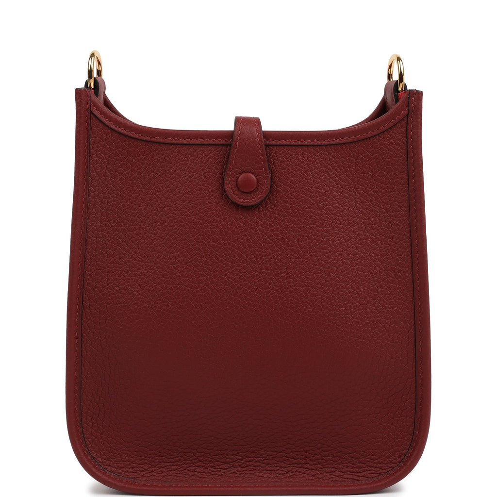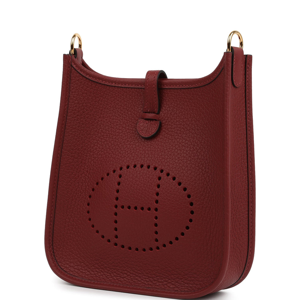 Hermes Evelyne TPM Rouge H Clemence Gold Hardware Shop for an authentic Hermes Evelyne TPM in Rouge H clemence leather with gold hardware in new and never worn condition at Madison Avenue Couture.