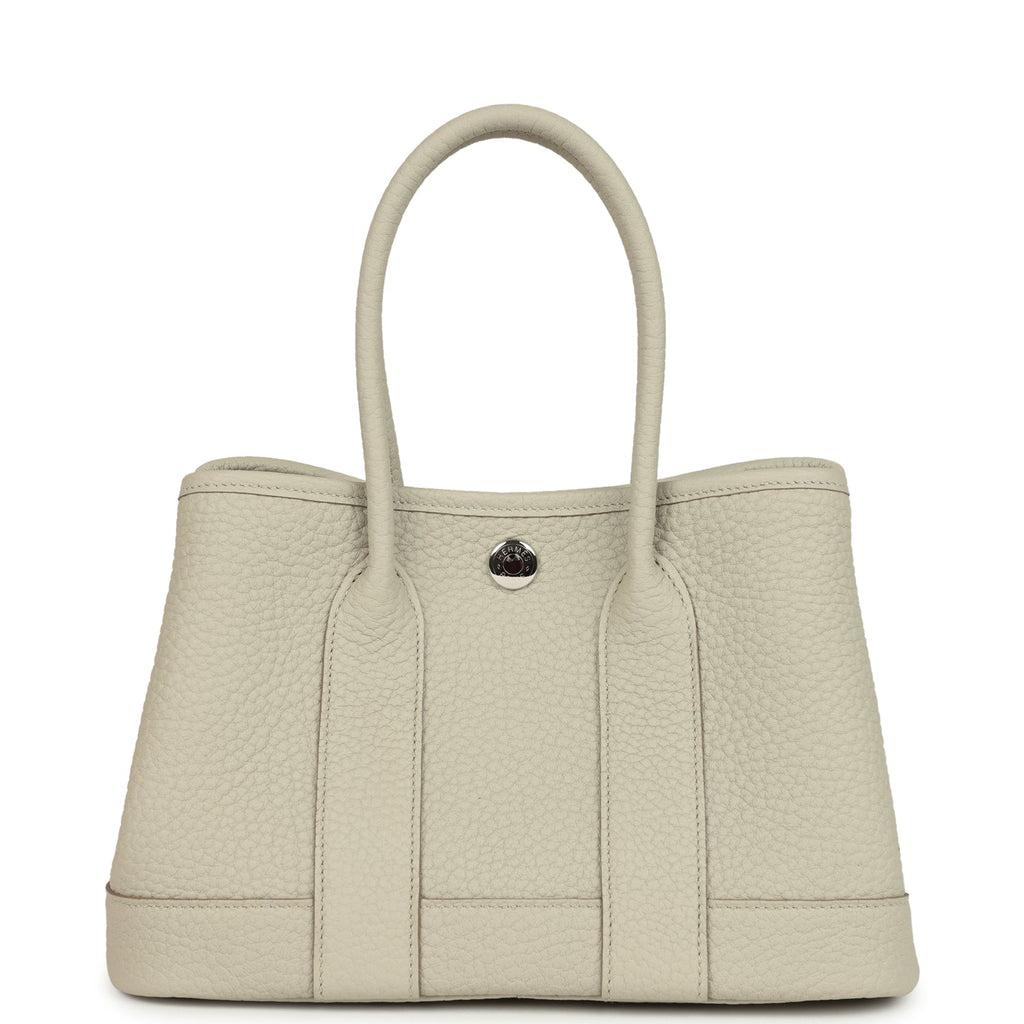 Hermes Garden Party Neo 23 Beton Negonda Palladium Hardware Shop for an authentic Hermes Garden Party Neo 23 in Beton Negonda leather with palladium hardware in new and never worn condition at Madison Avenue Couture.