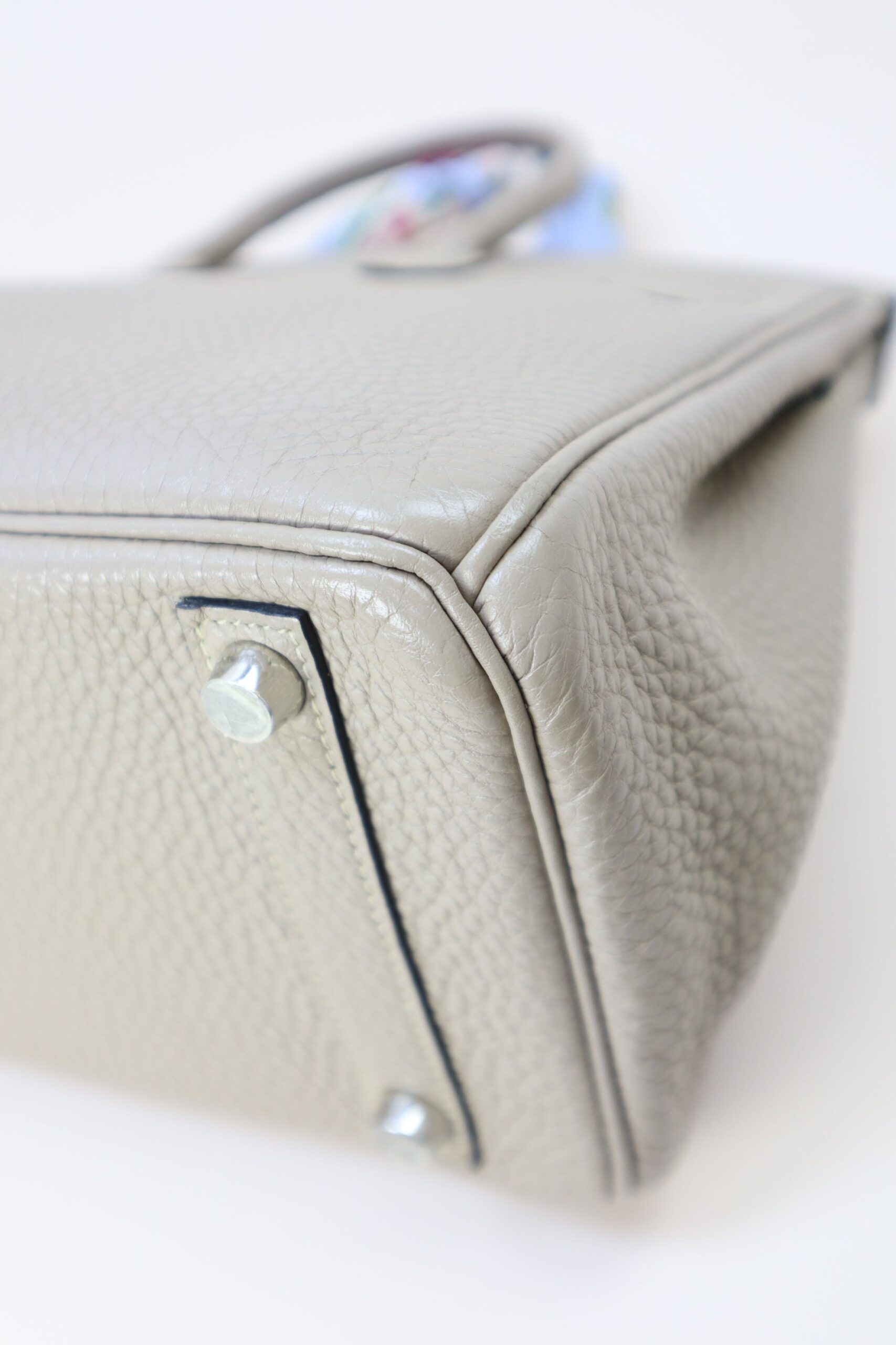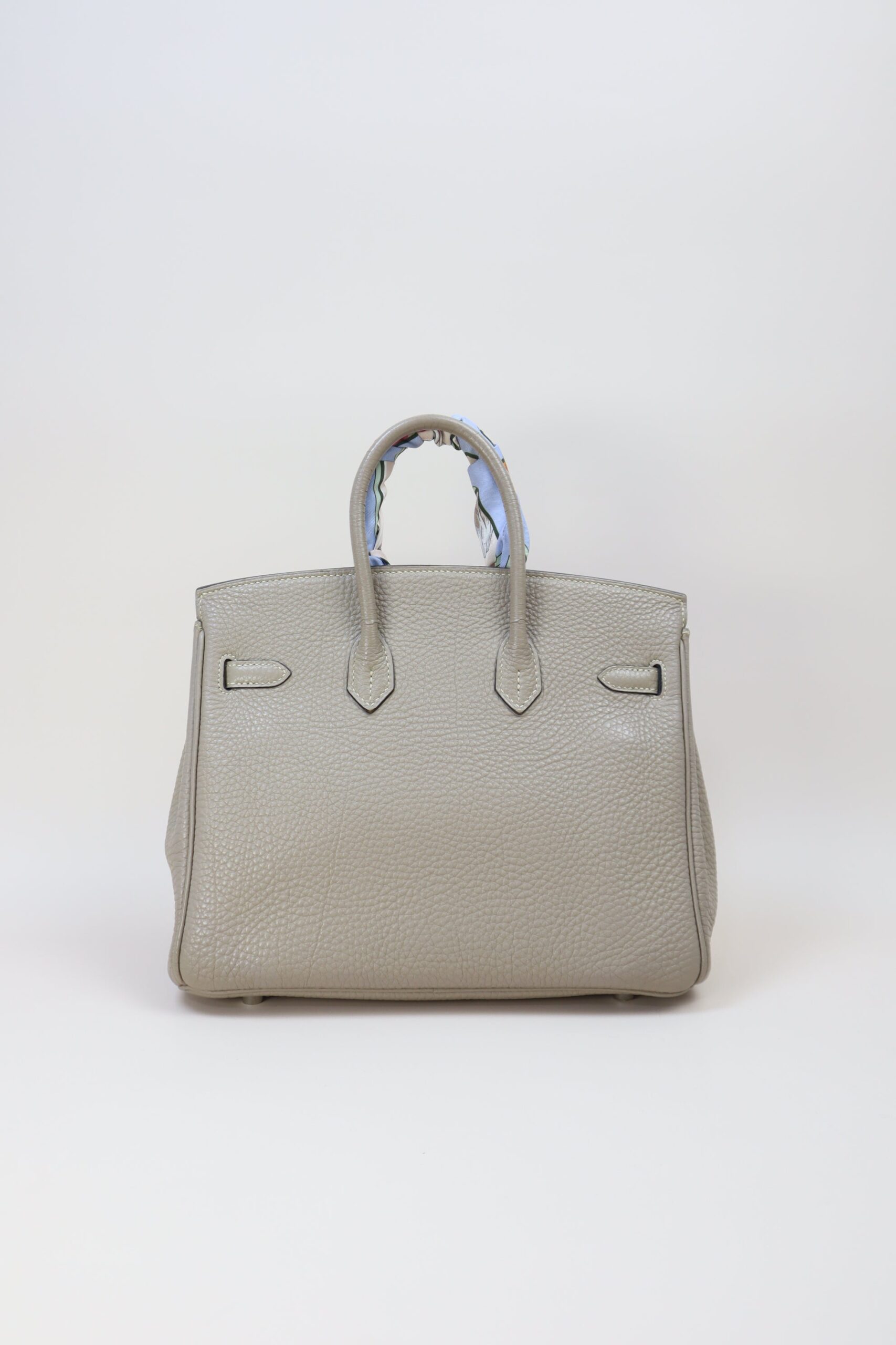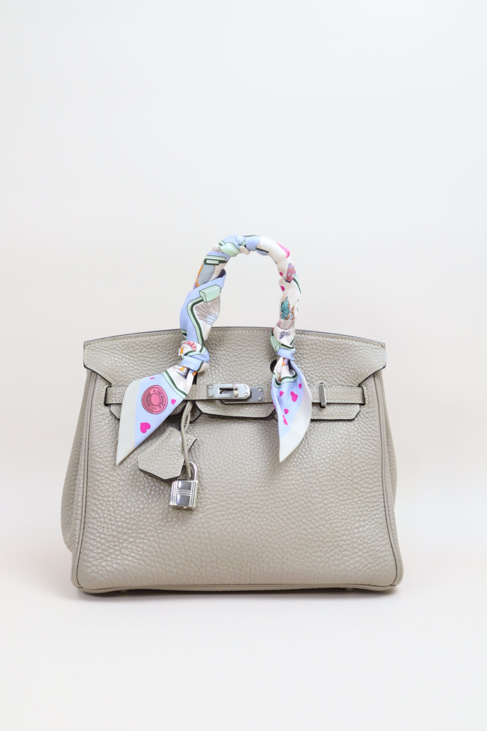 Hermes Gris Tourterelle Birkin 25 Bag with Twilly