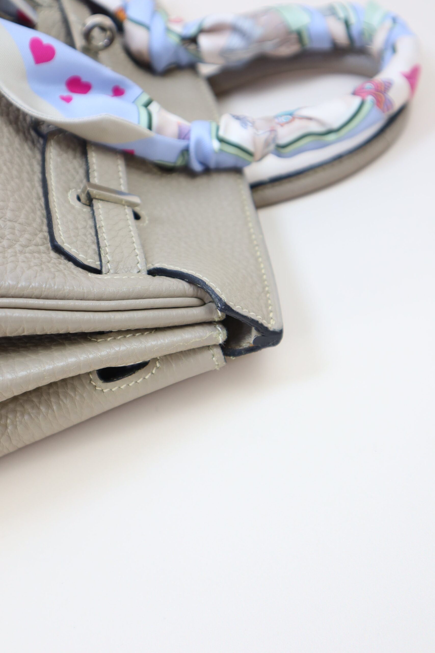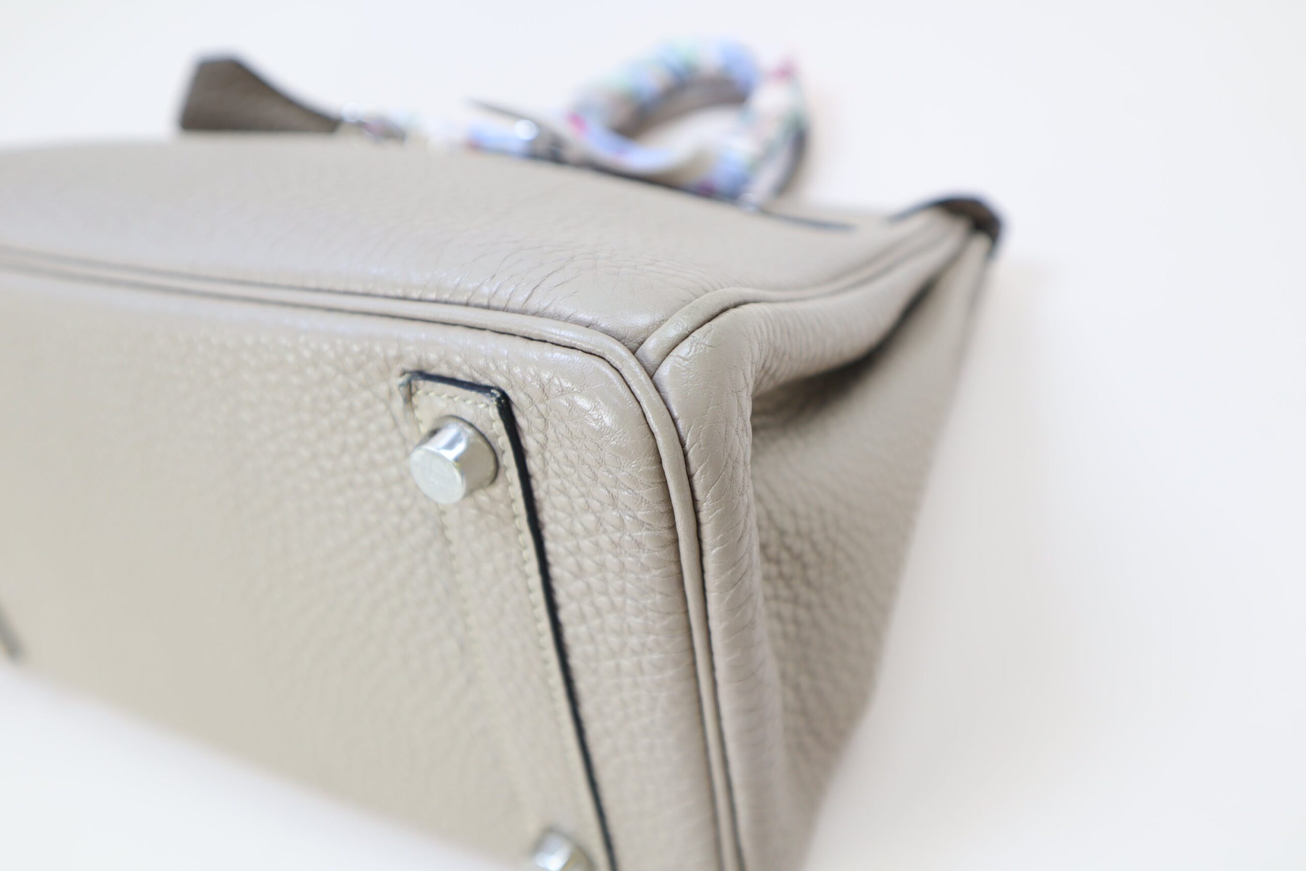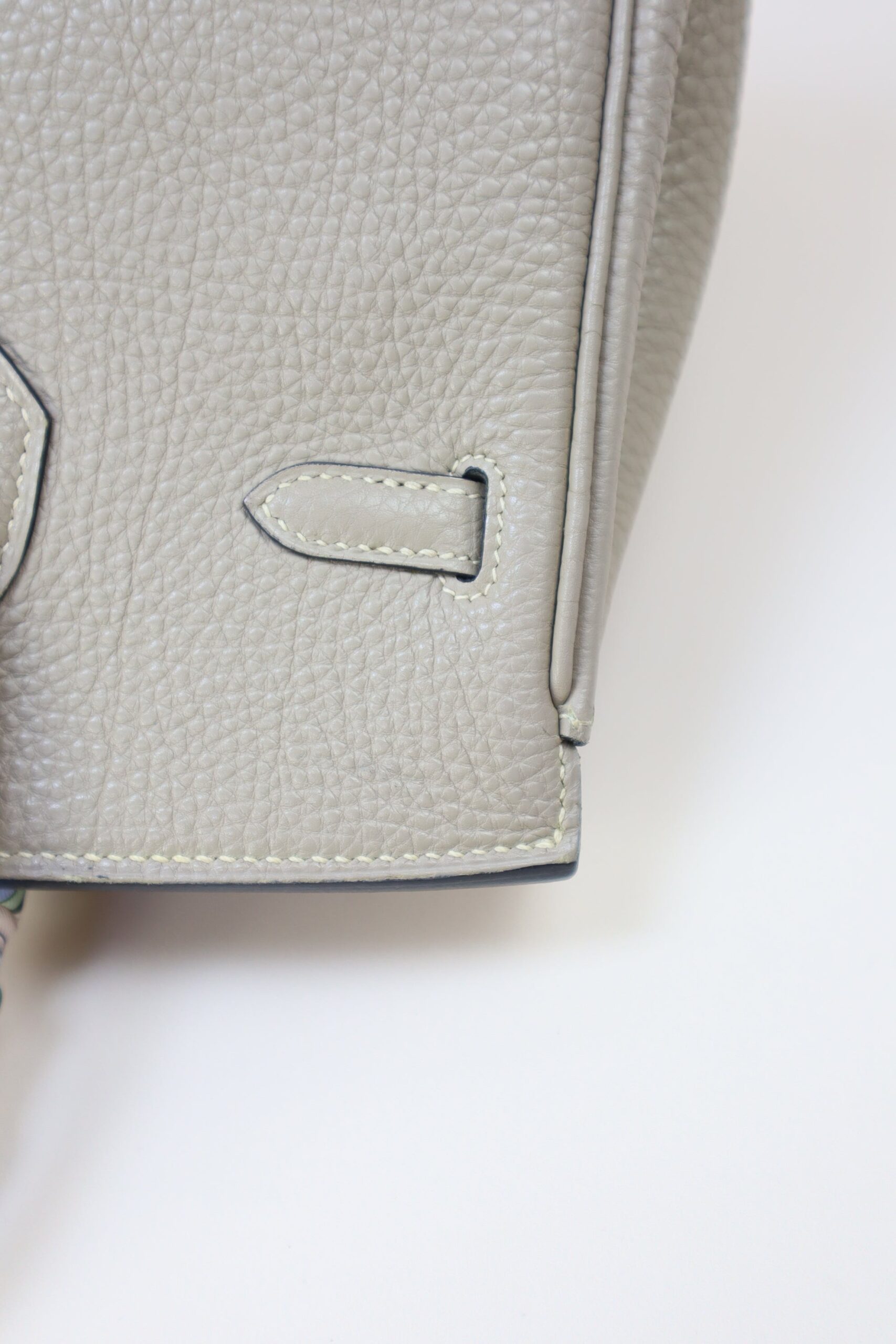 Hermes Gris Tourterelle Birkin 25 Bag with Twilly