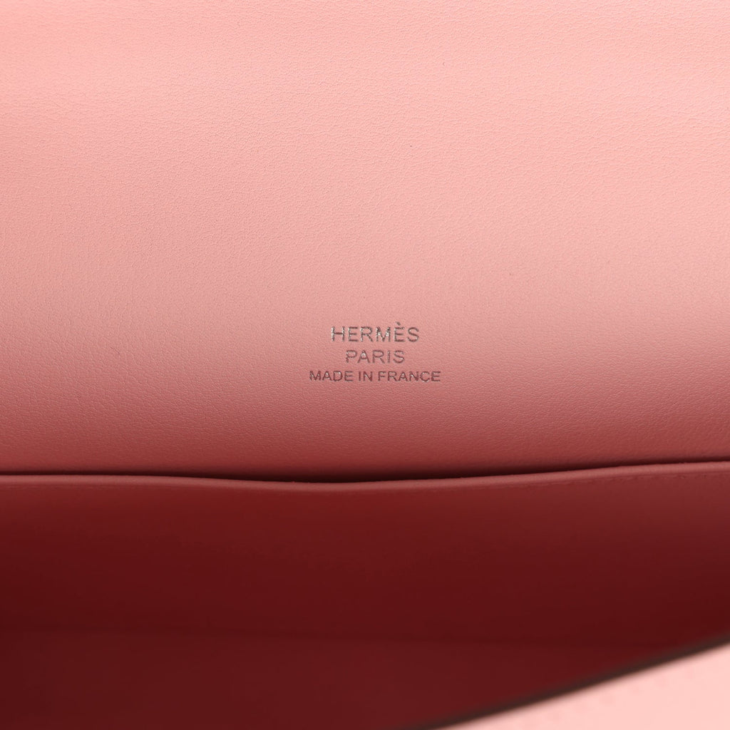 Hermes Kelly Pochette Rose Sakura Swift Palladium Hardware Shop for an authentic Hermes Kelly Pochette in Rose Sakura swift leather with palladium hardware in new and never worn condition at Madison Avenue Couture.