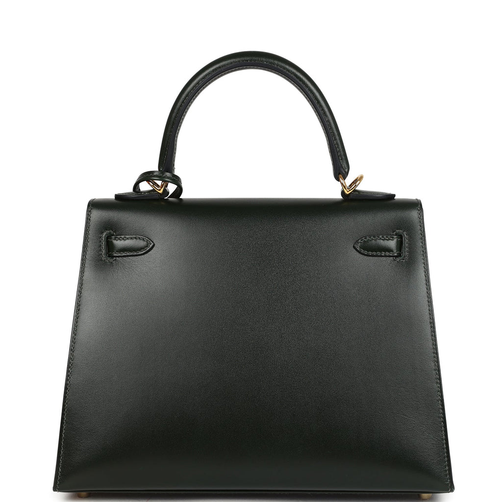 Hermes Kelly Sellier 25 Vert Fonce Box Gold Hardware