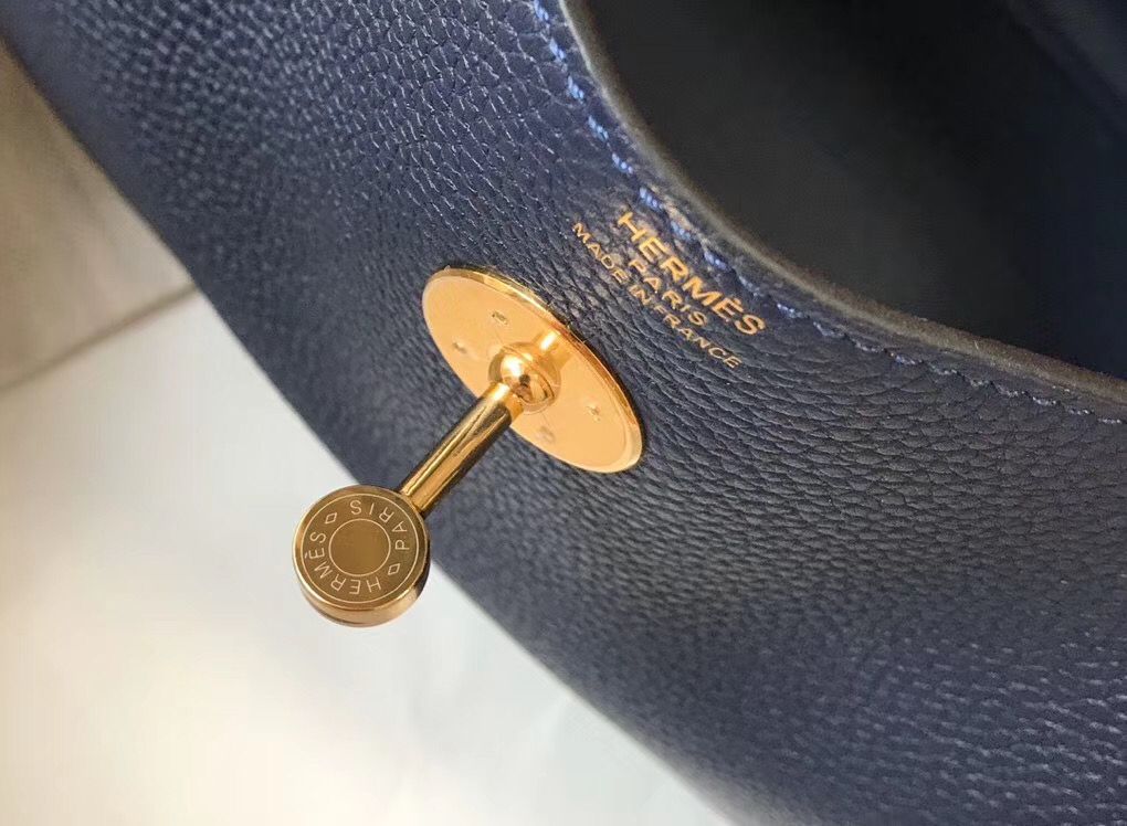 Hermes Lindy 30cm Bag In Navy Blue Clemence Leather GHW