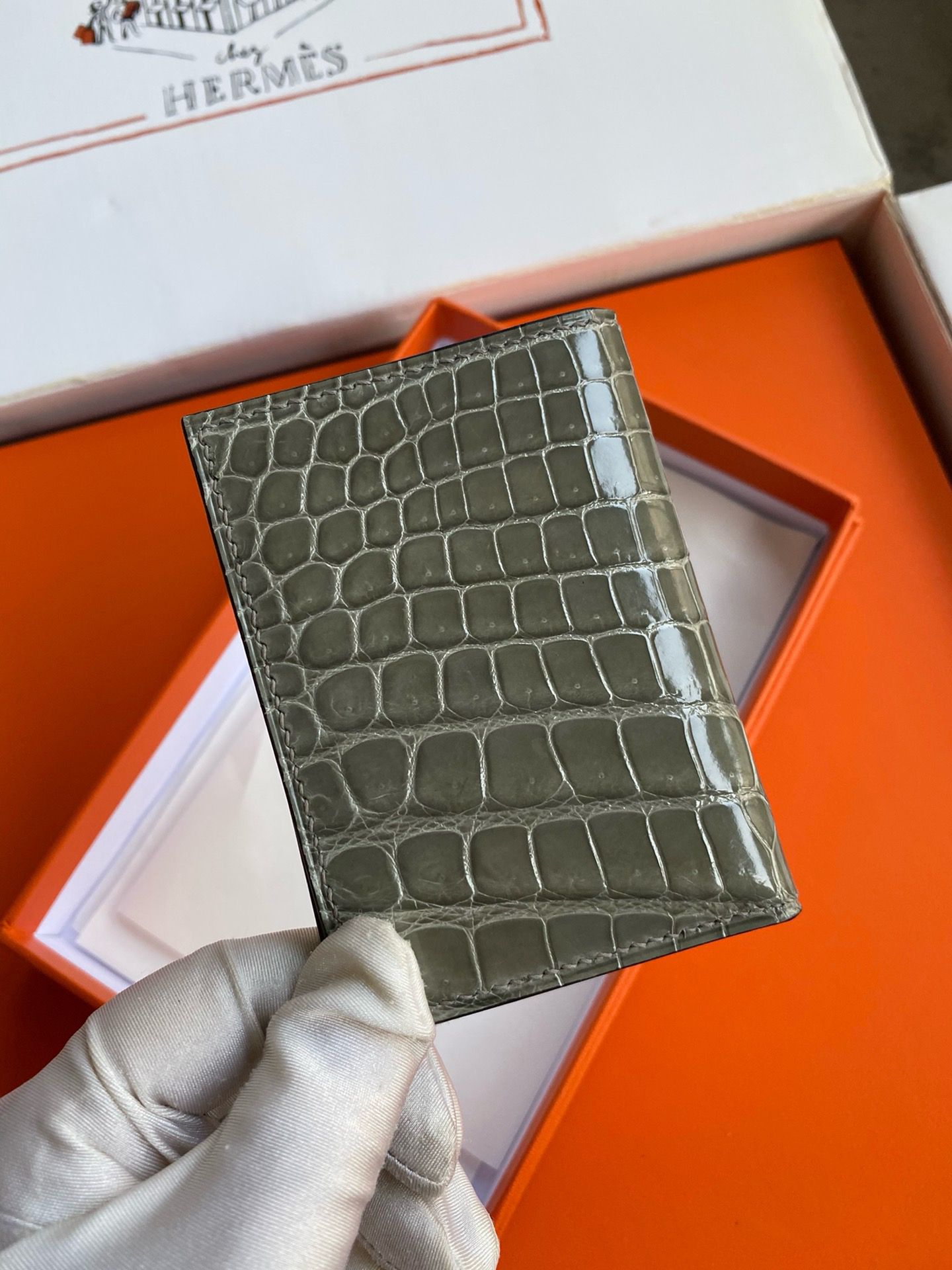 Hermes MC² Euclide Card Holder in Tourterelle Shiny Alligator Leather