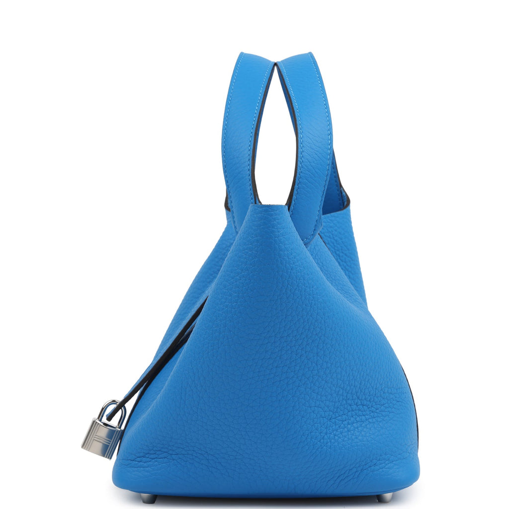 Hermes Picotin Lock 18 Bleu Hydra Clemence Palladium Hardware Shop for an authentic Hermes Picotin Lock 18 in Bleu Hydra clemence leather with palladium hardware in new and never worn condition at Madison Avenue Couture.