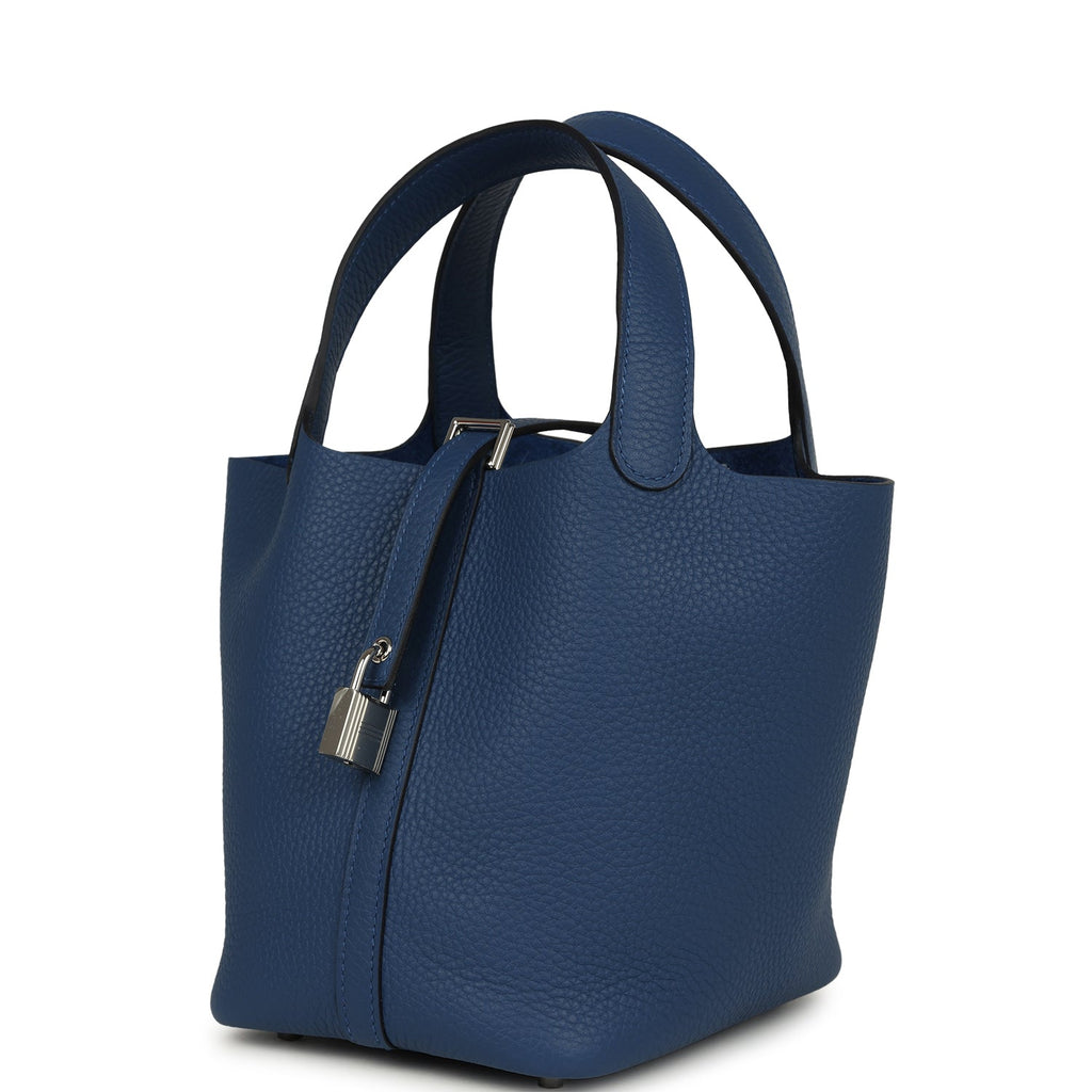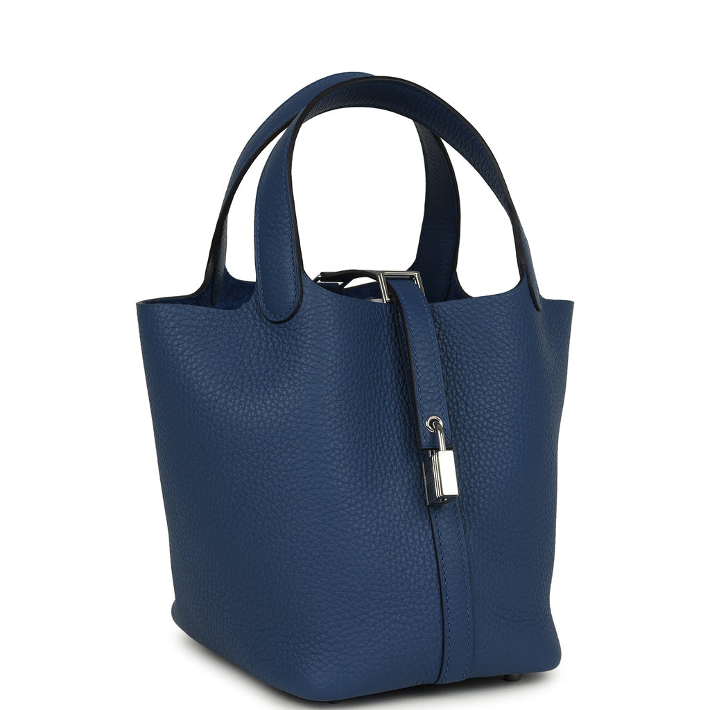 Hermes Picotin Lock 18 Bleu Tie Clemence Palladium Hardware Shop for an authentic Hermes Picotin Lock 18 in Bleu Tie clemence leather with palladium hardware in new and never worn condition at Madison Avenue Couture.