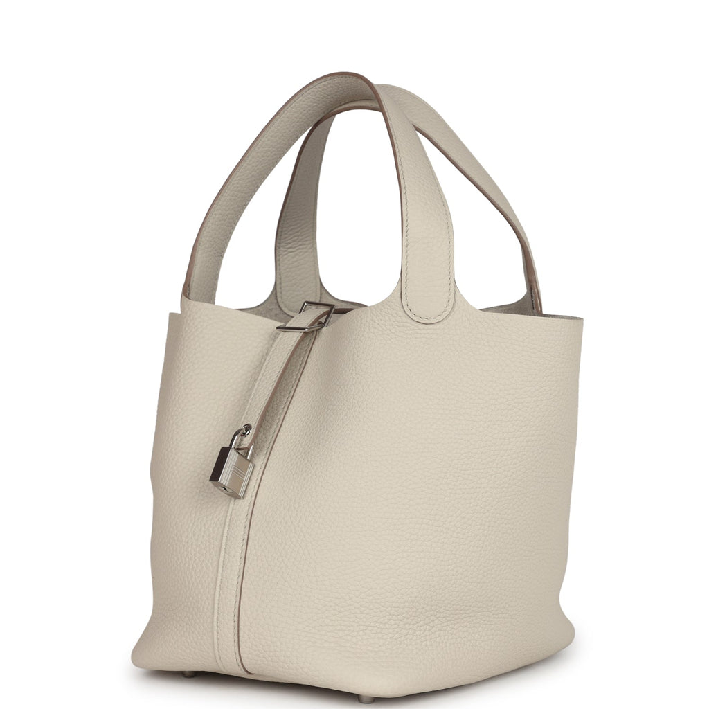 Hermes Picotin Lock 22 Beton Clemence Palladium Hardware Shop for an authentic Hermes Picotin Lock 22 in Beton clemence leather with palladium hardware in new and never worn condition at Madison Avenue Couture.