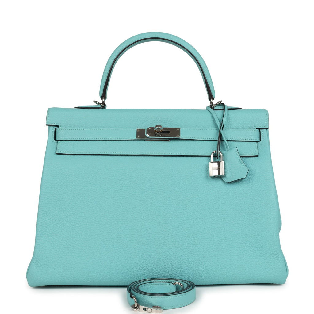 This Special Order Verso Kelly, in the Sellier style, is in Rose Pourpre epsom leather with palladium hardware, has tonal stitching, two straps with front toggle closure, single rolled handle and removable shoulder strap.The interior is lined with Gris Perle lambskin leather and has one open pocket on the back wall.Collection: B (2023)Origin: FranceCondition: New and never worn (plastic on hardware)Accompanied by: Hermes box, Hermes dustbag, shoulder strap, shoulder strap dustbag, felt, carebook and ribbonMeasurements: 7.5″ width x 5″ height x 2.25″ depth; 2.5″ handle drop (18″ shoulder strap drop)