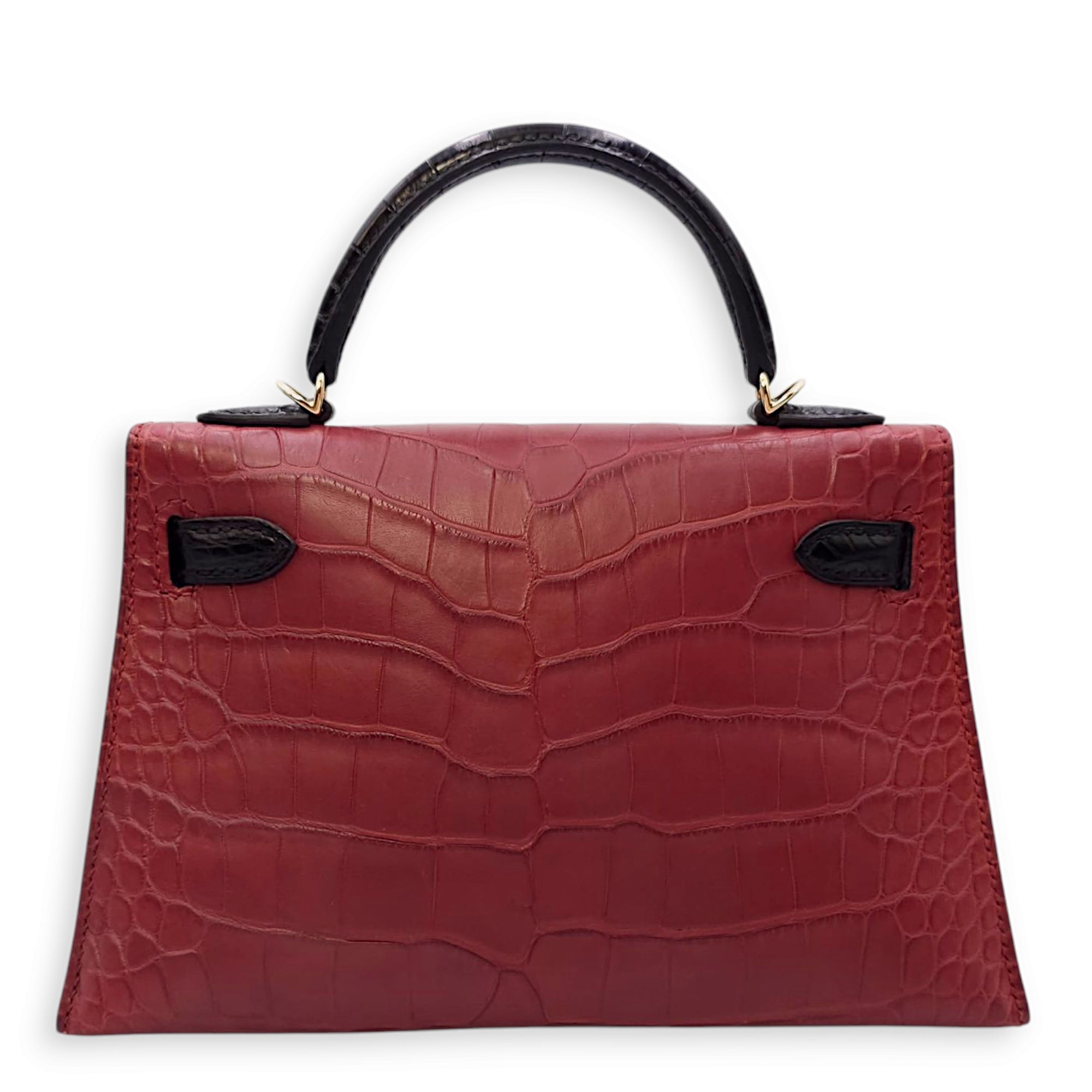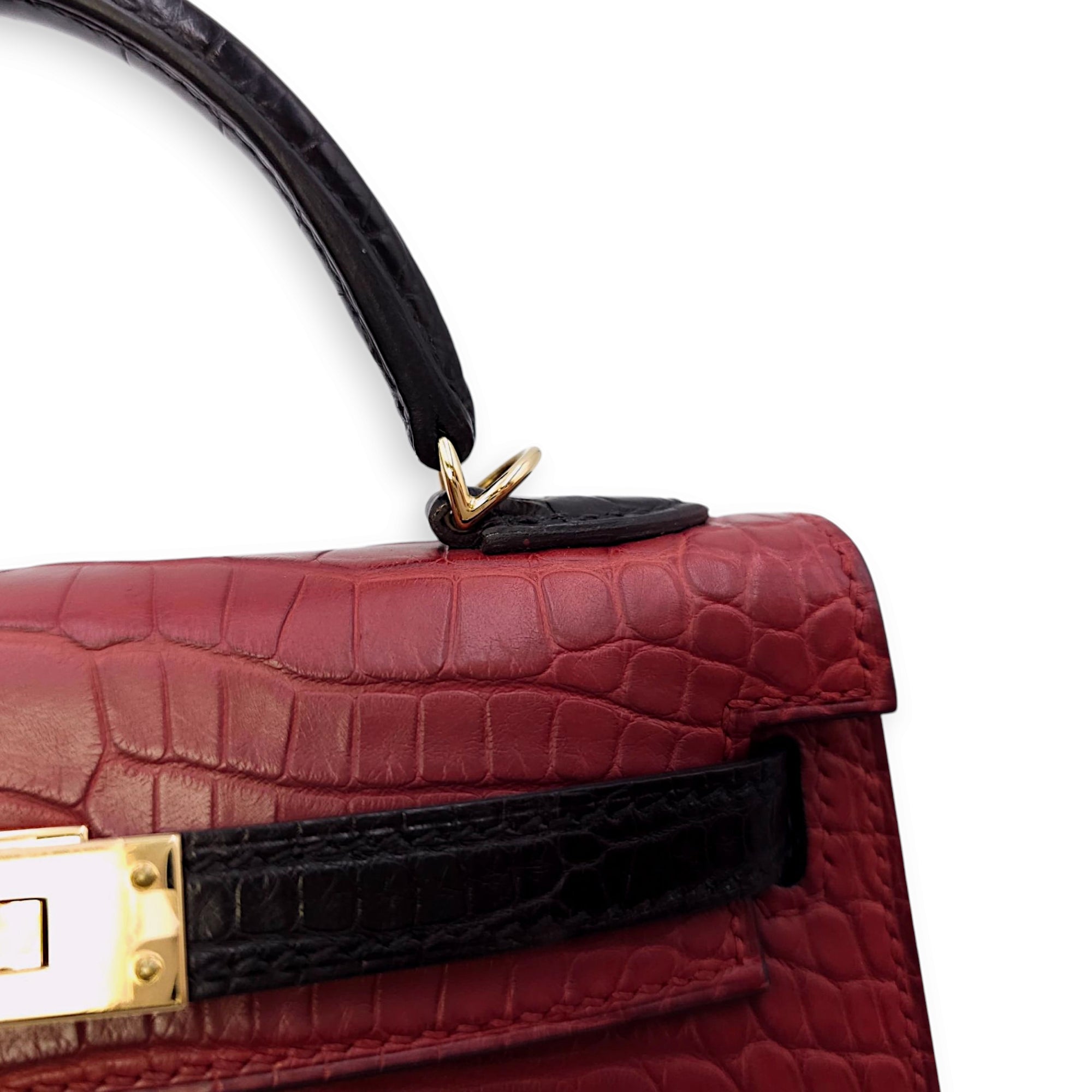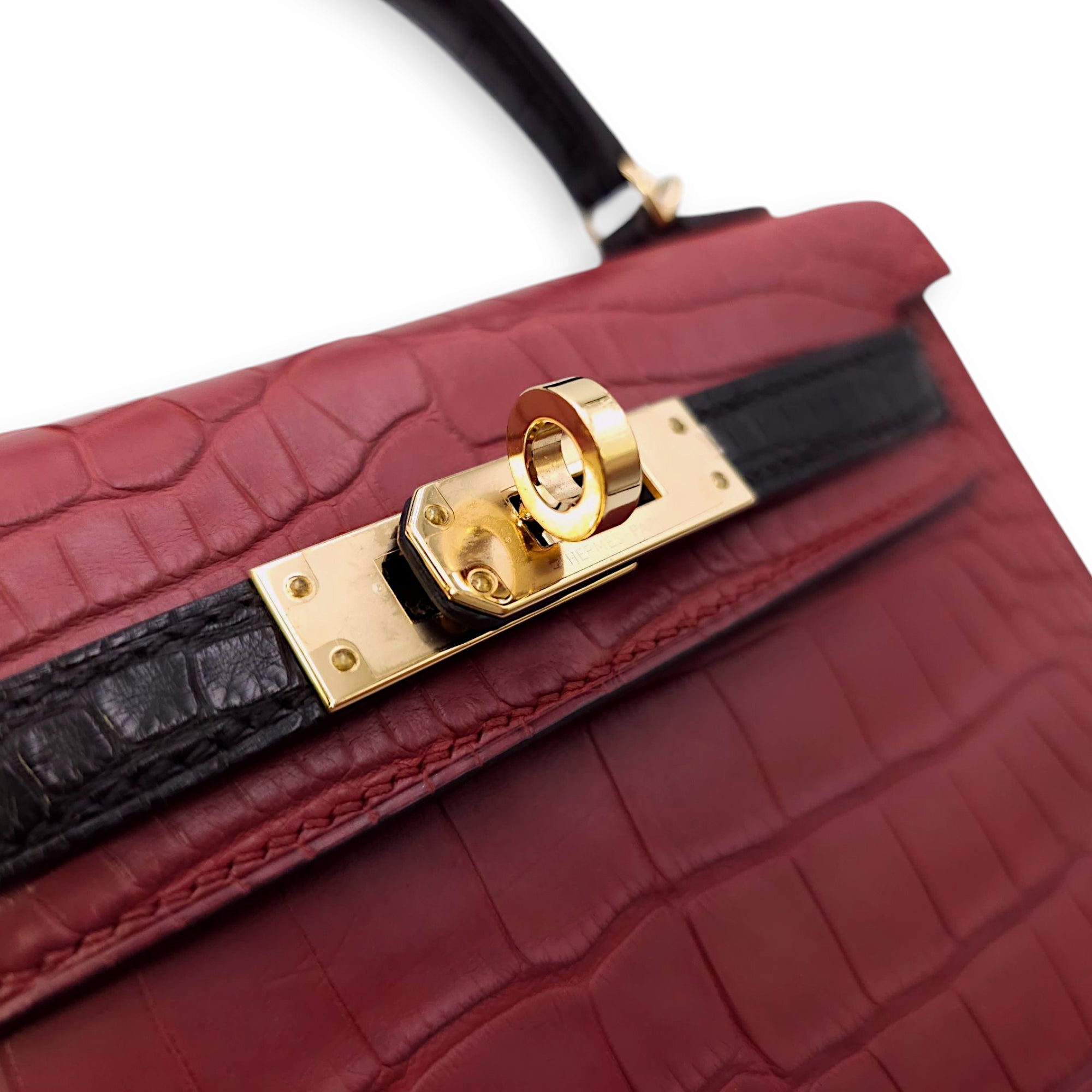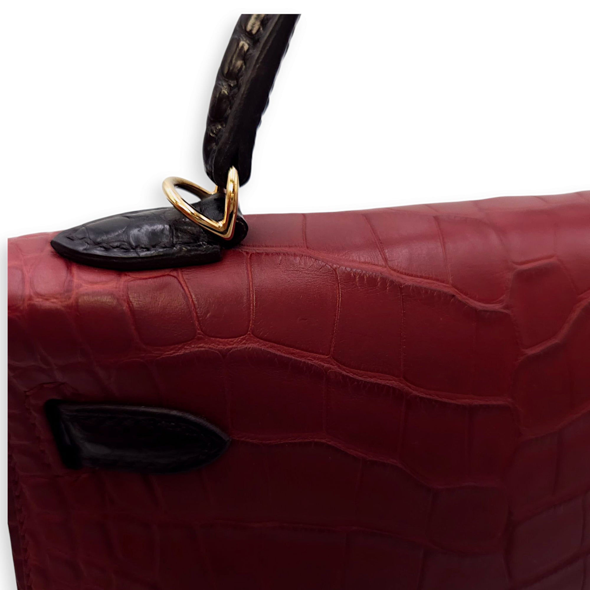 HSS Sellier Kelly 20 Rouge H/Black in Matte Alligator, Permabrass hardware
