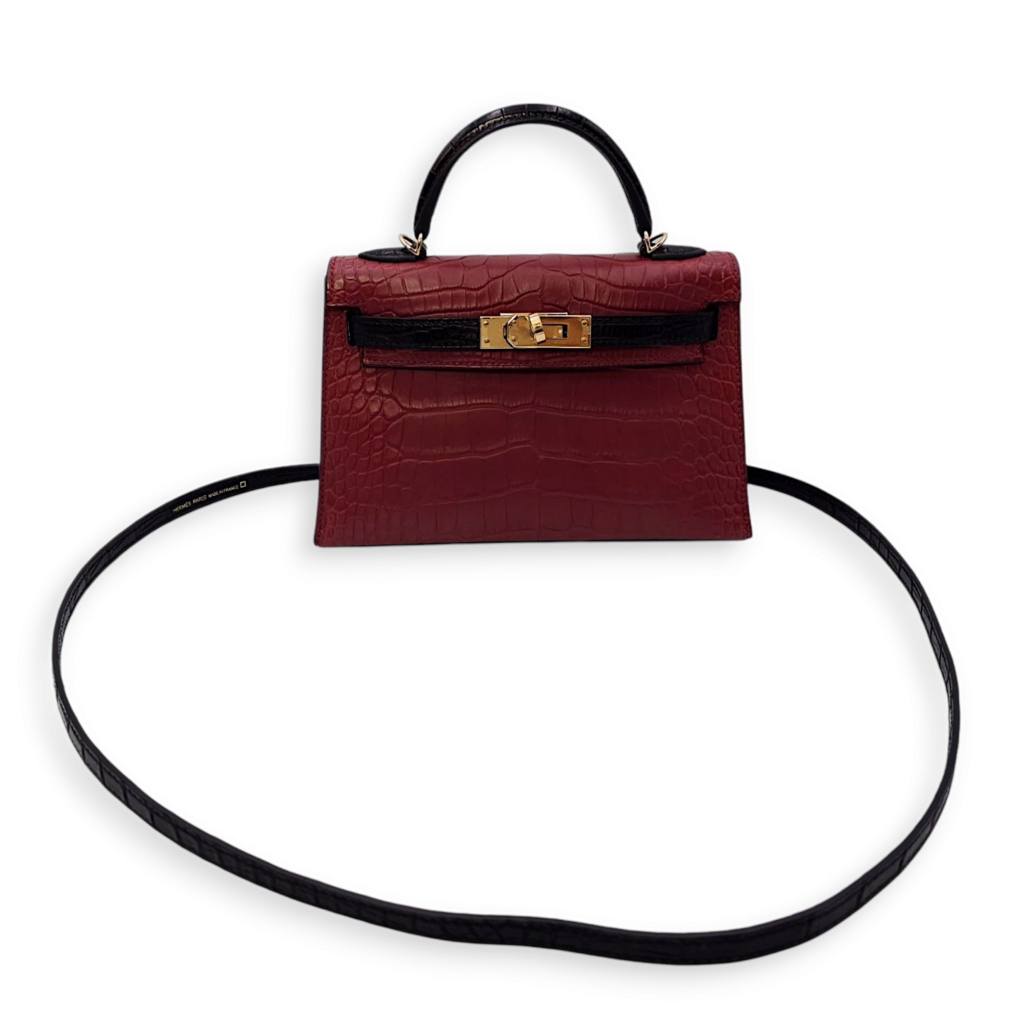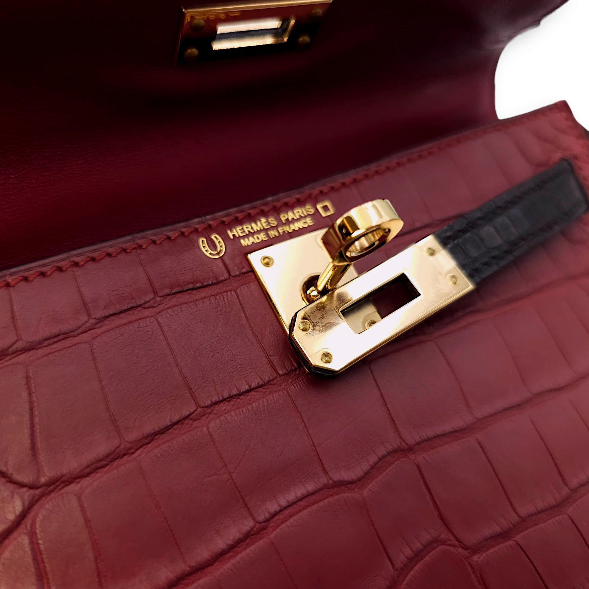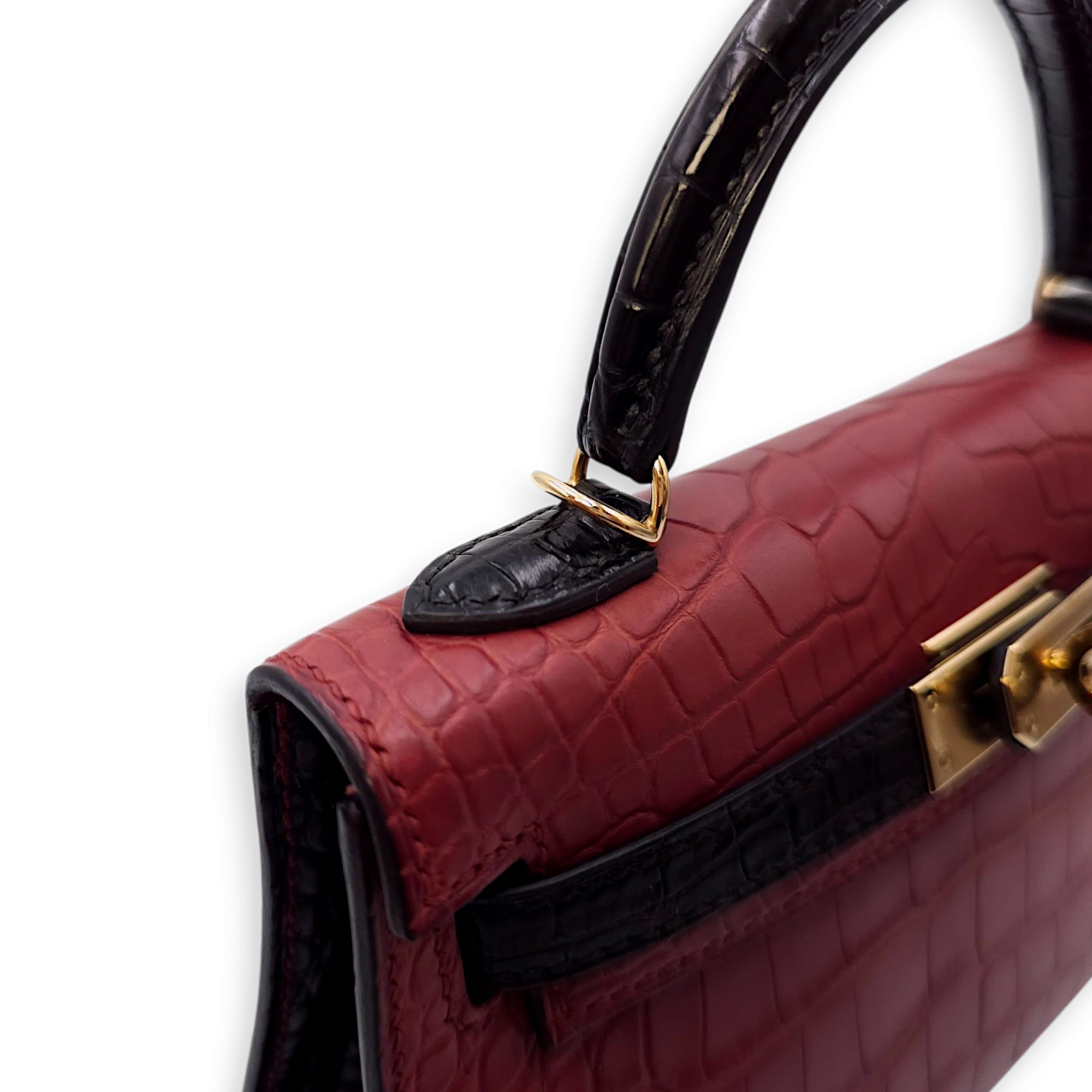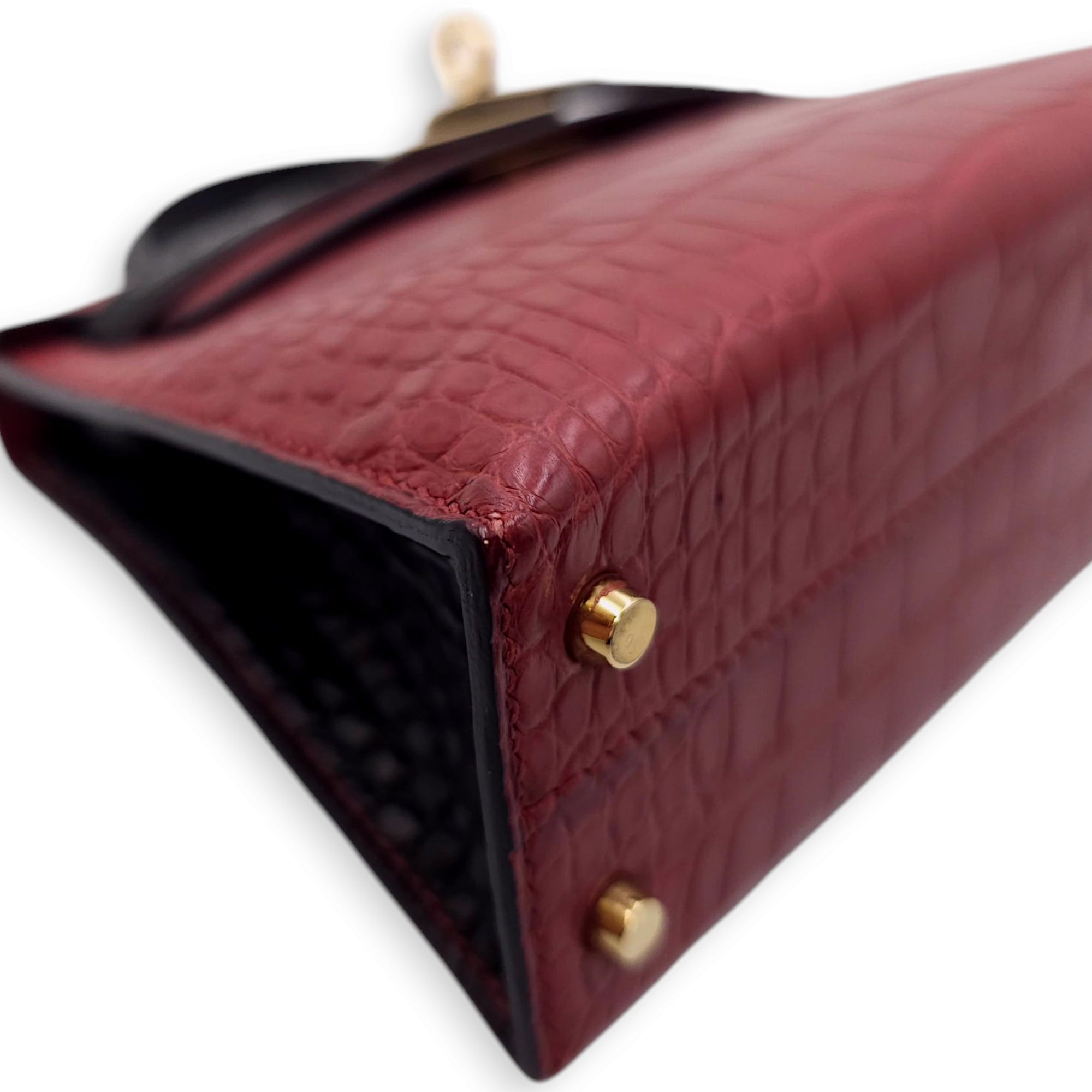 HSS Sellier Kelly 20 Rouge H/Black in Matte Alligator, Permabrass hardware