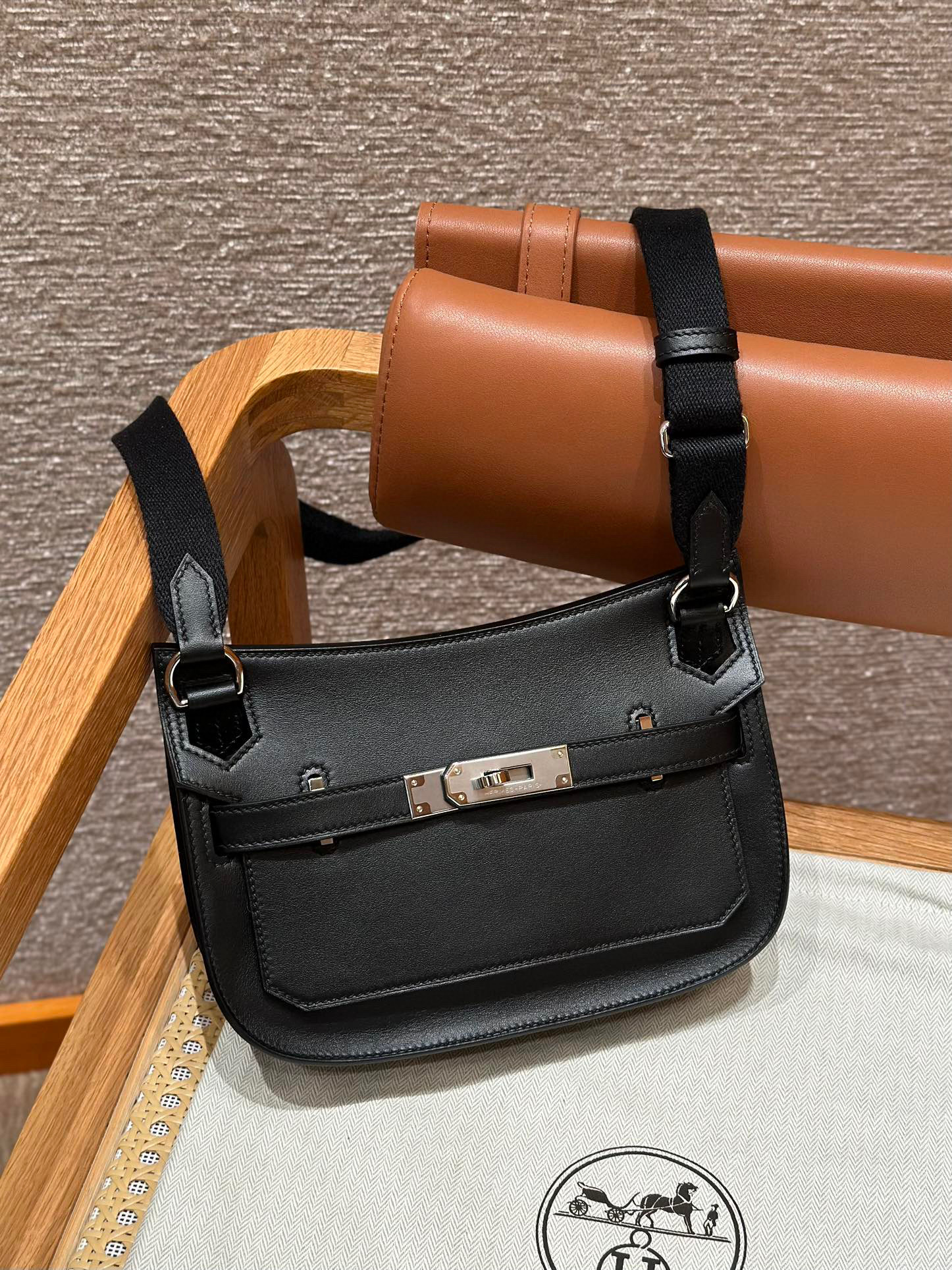 Includes dust bag, ribbon, care booklet, and box