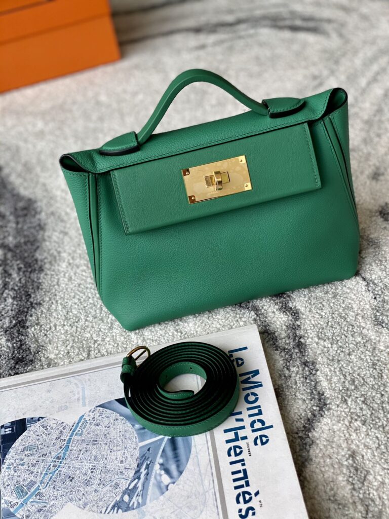 Includes lock, two keys, clochette, clochette dust bag, ribbon, care booklet, raincoat, felt protector, dust bag, and box .