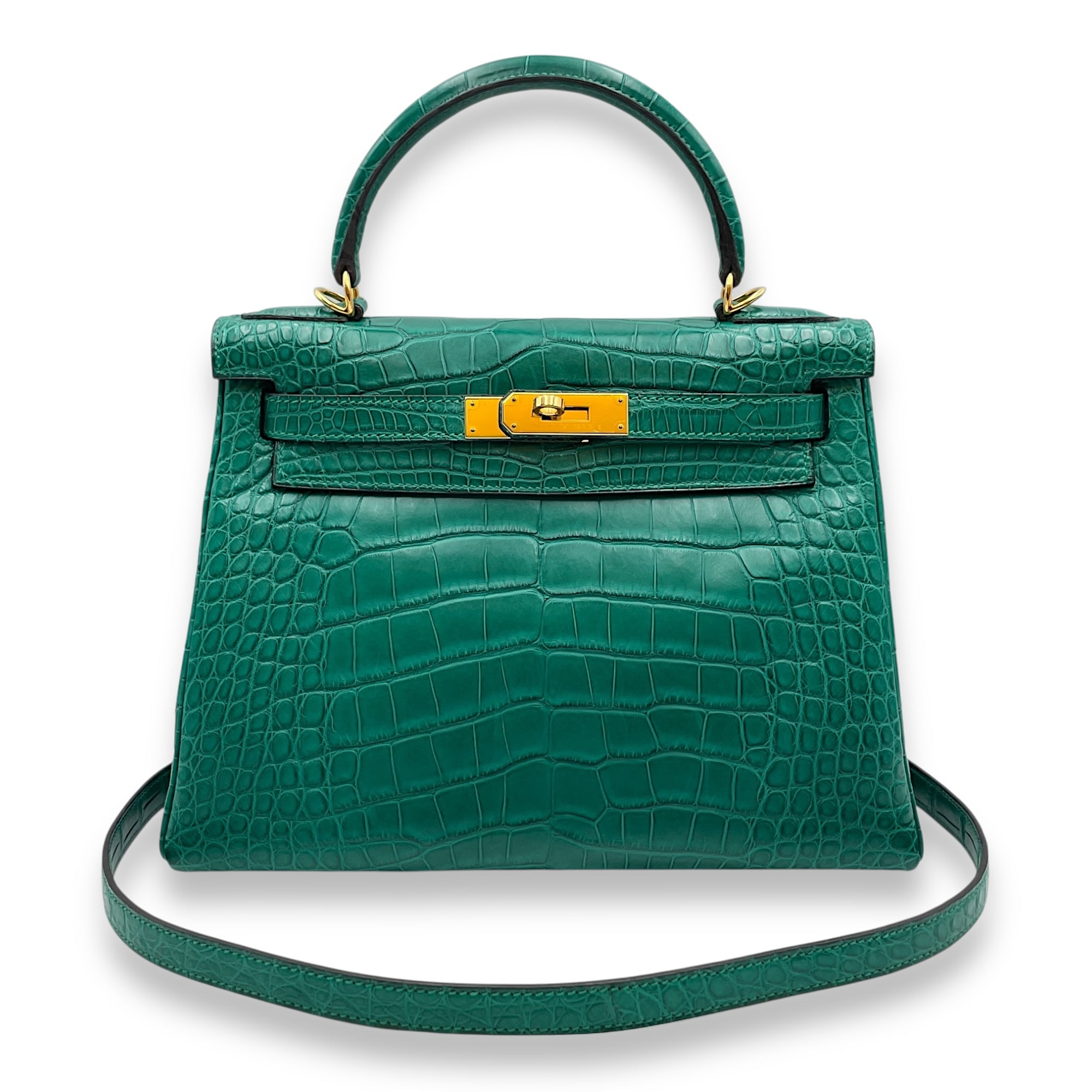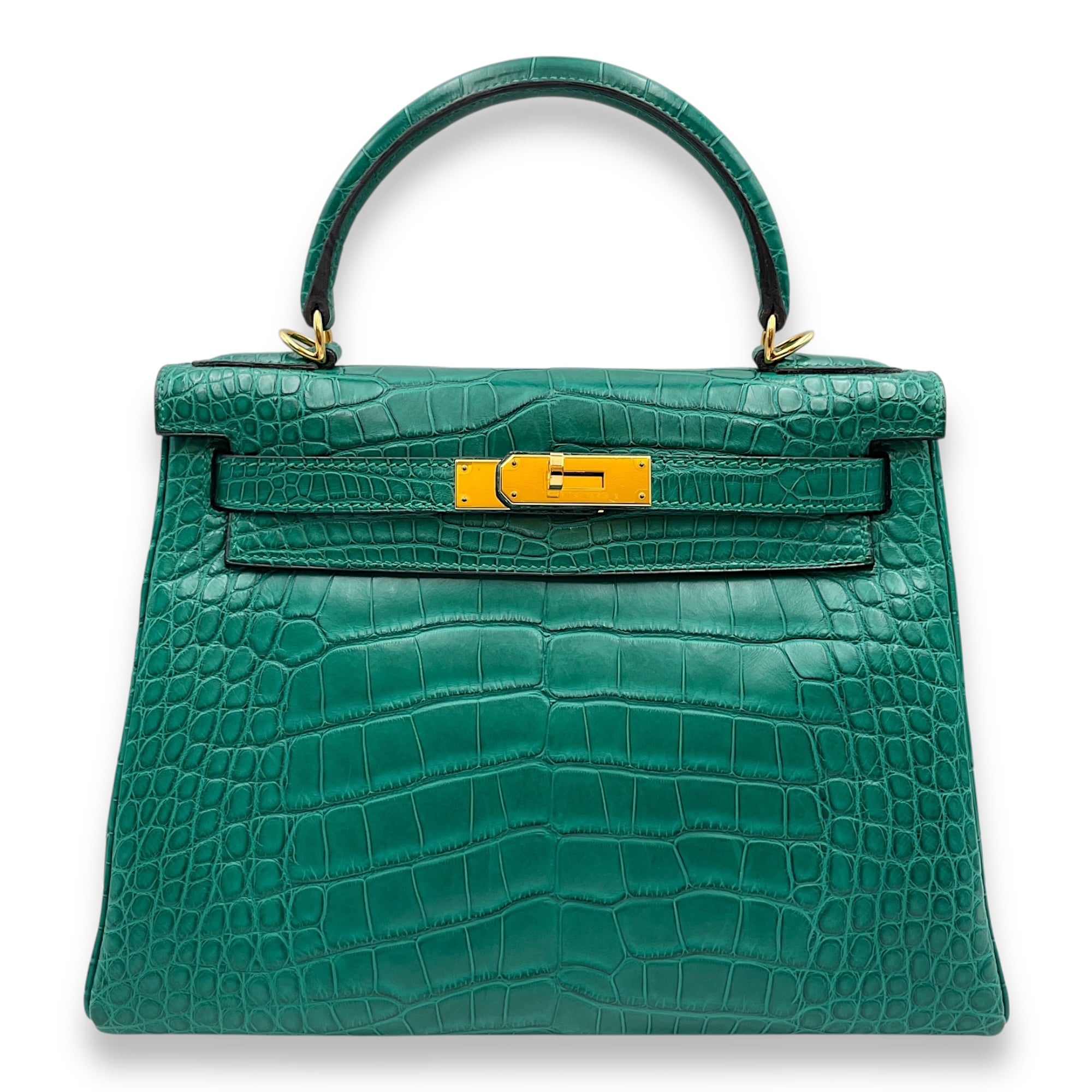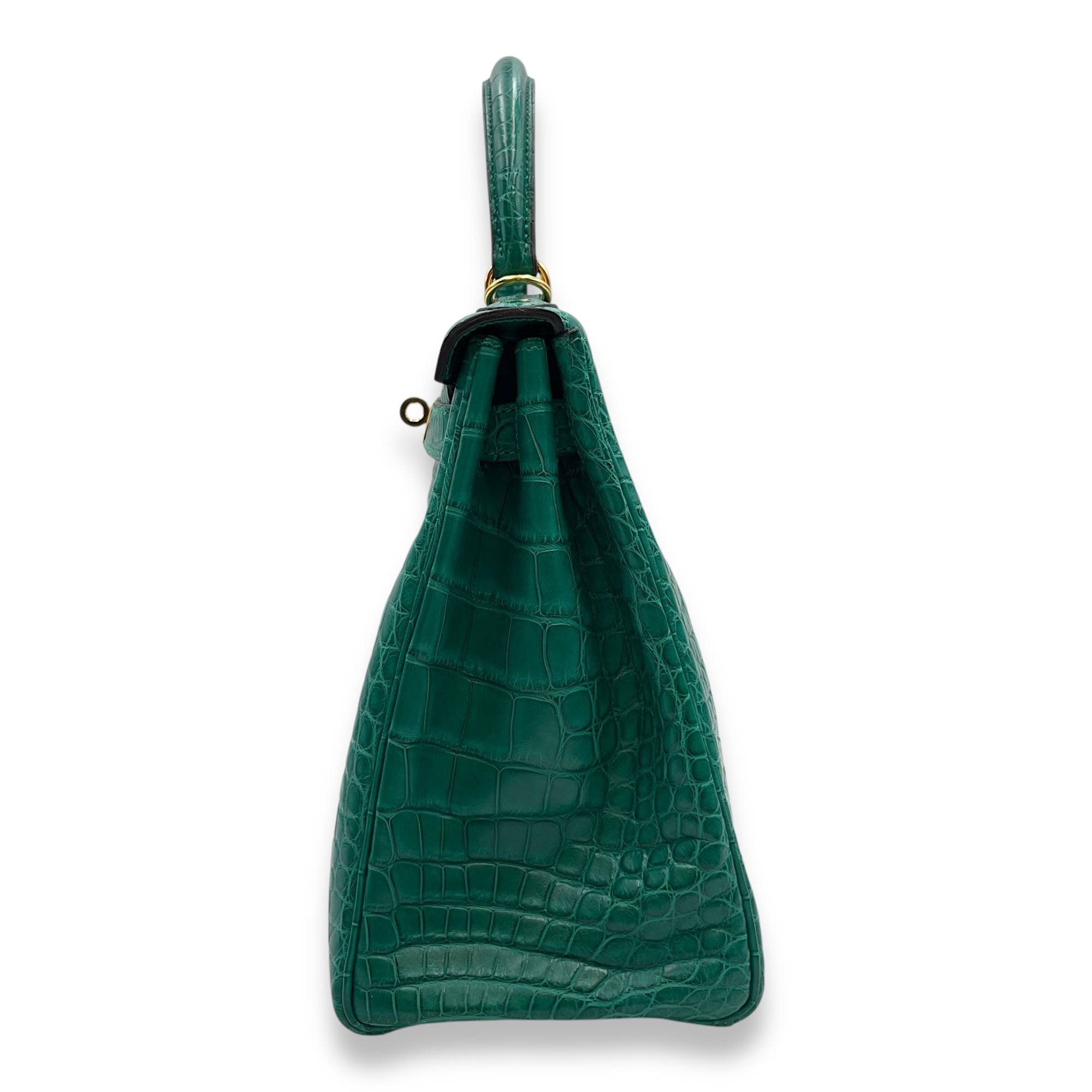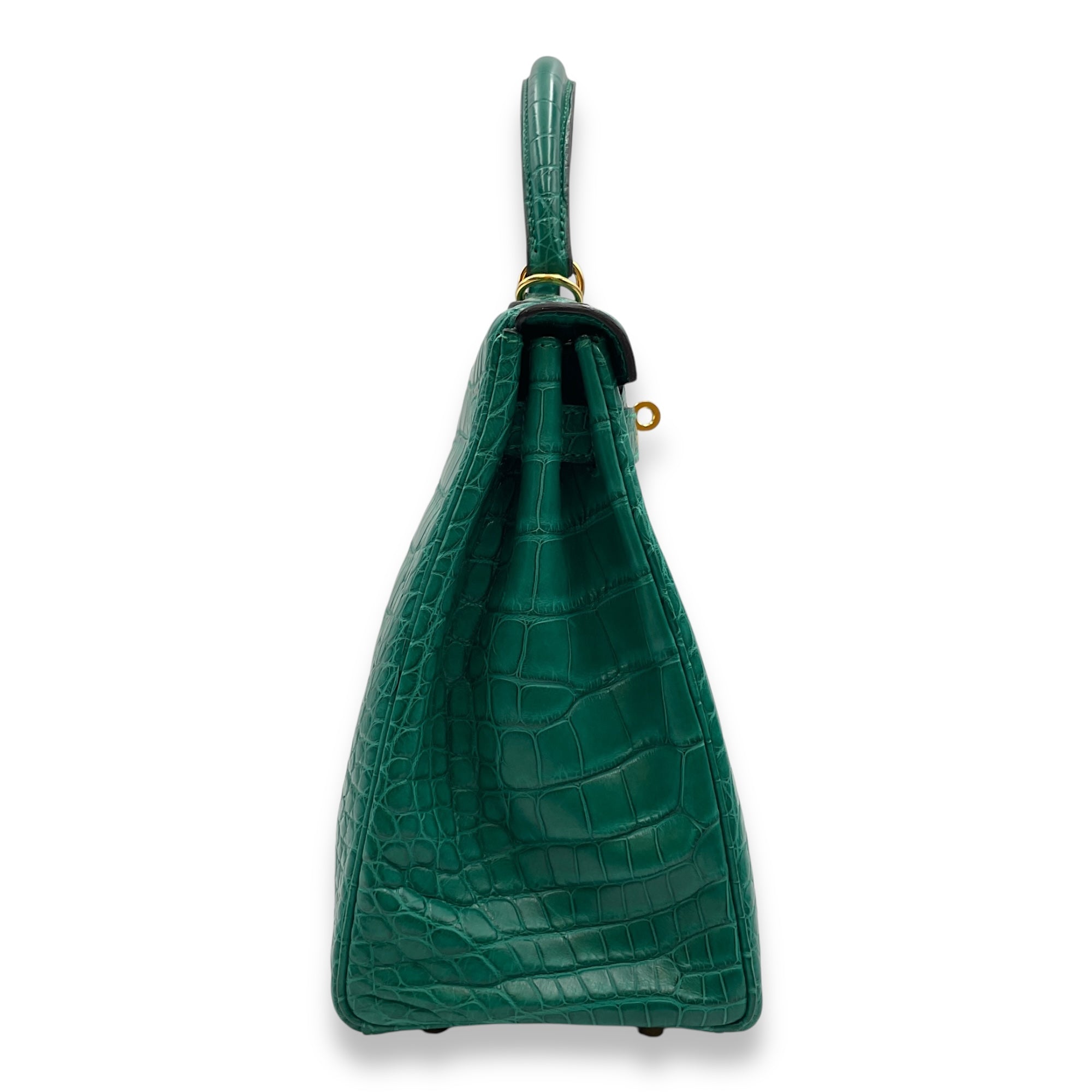 Kelly 28 Malachite in Matte Alligator, Gold hardware
