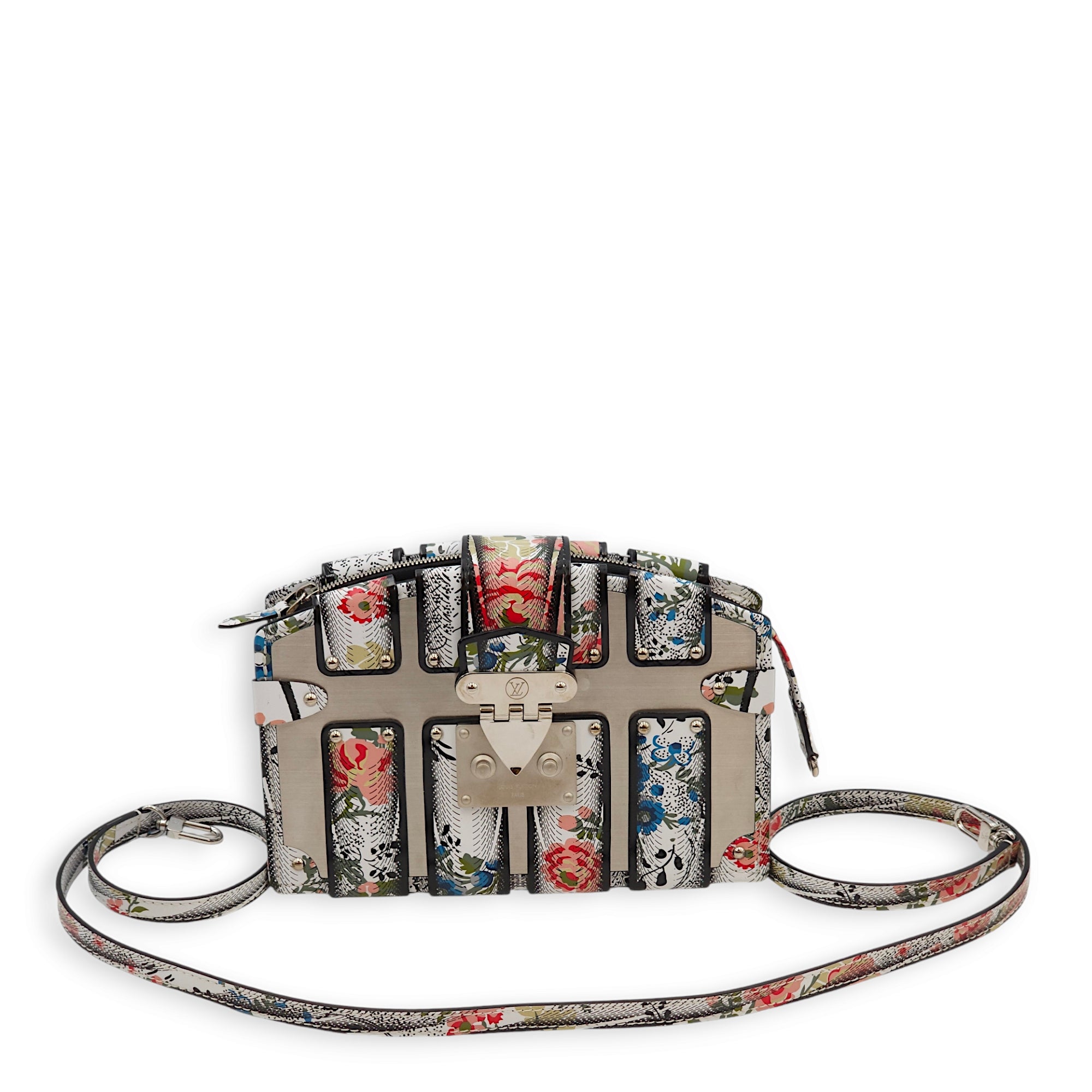 LV Petite Malle (SS 2018 Collection) Floral Print Clutch in Calf/Metal, Palladium hardware
