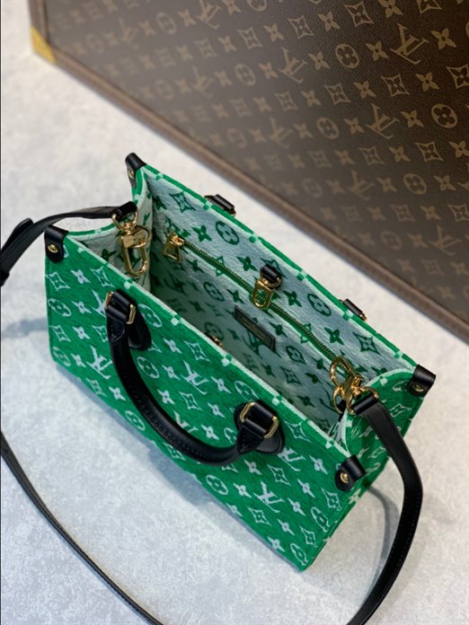This sporty edition of the OnTheGo PM tote comes from the LV Match capsule, a tribute to the world of Grand Slam tennis. Crafted from a velvety Monogram jacquard with contrasting leather trim, it is lined with the same Monogram pattern in a reverse colorway for a playful effect. A fun, fashionable piece to carry courtside or in the city.