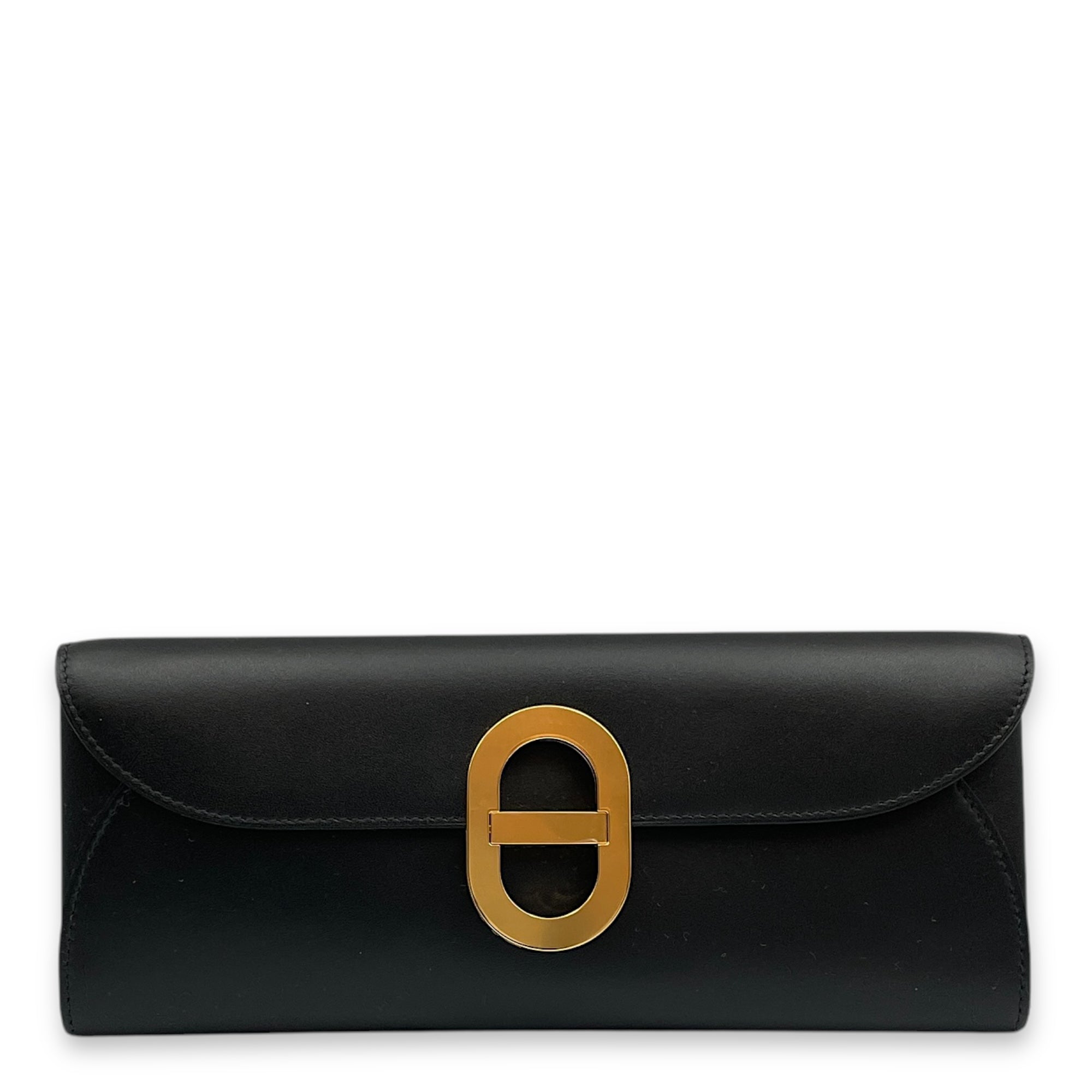 Maillon To Go Black Wallet On Chain in Tadelakt, Gold hardware