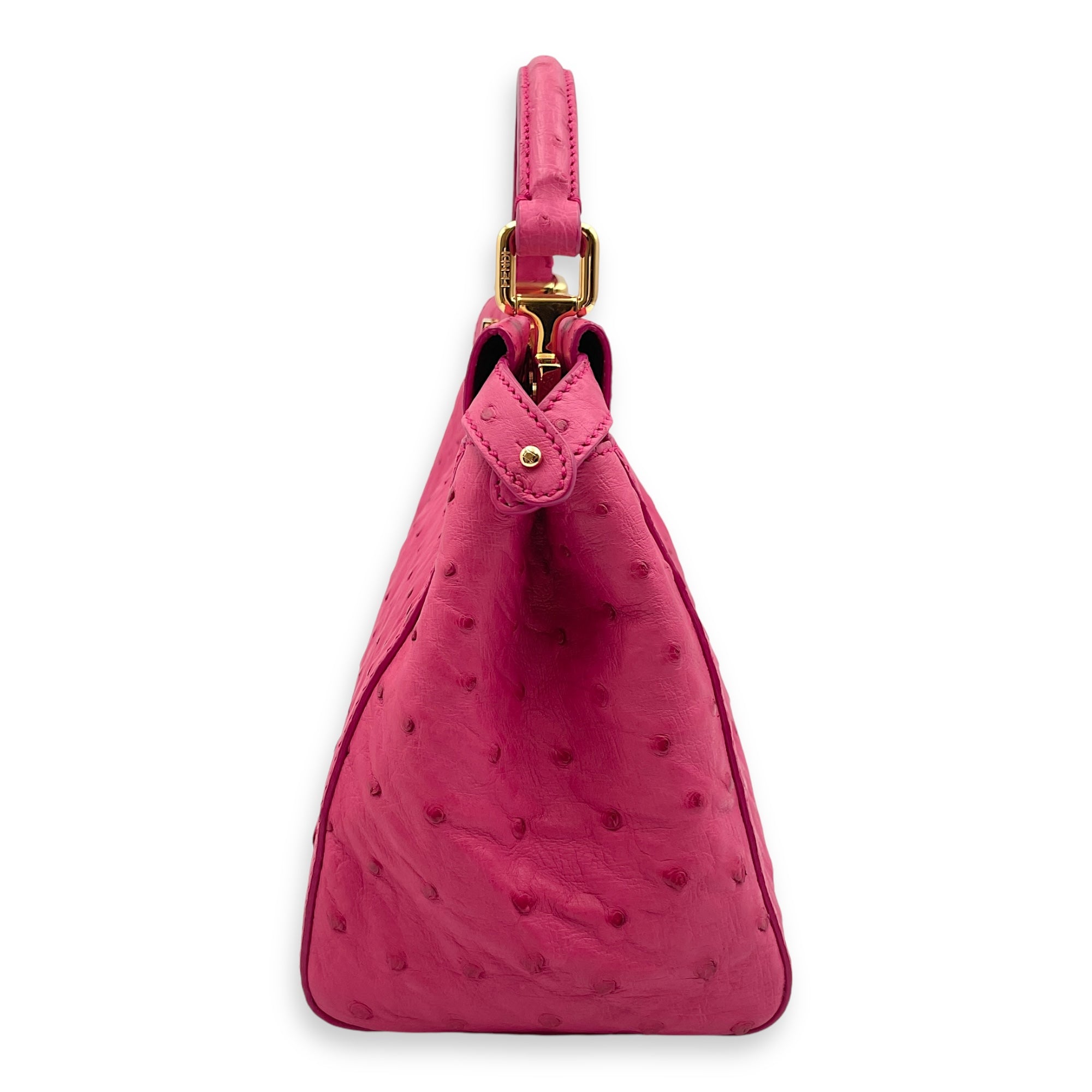 Peekaboo Mini Pink Crossbody Bag in Ostrich, Gold hardware