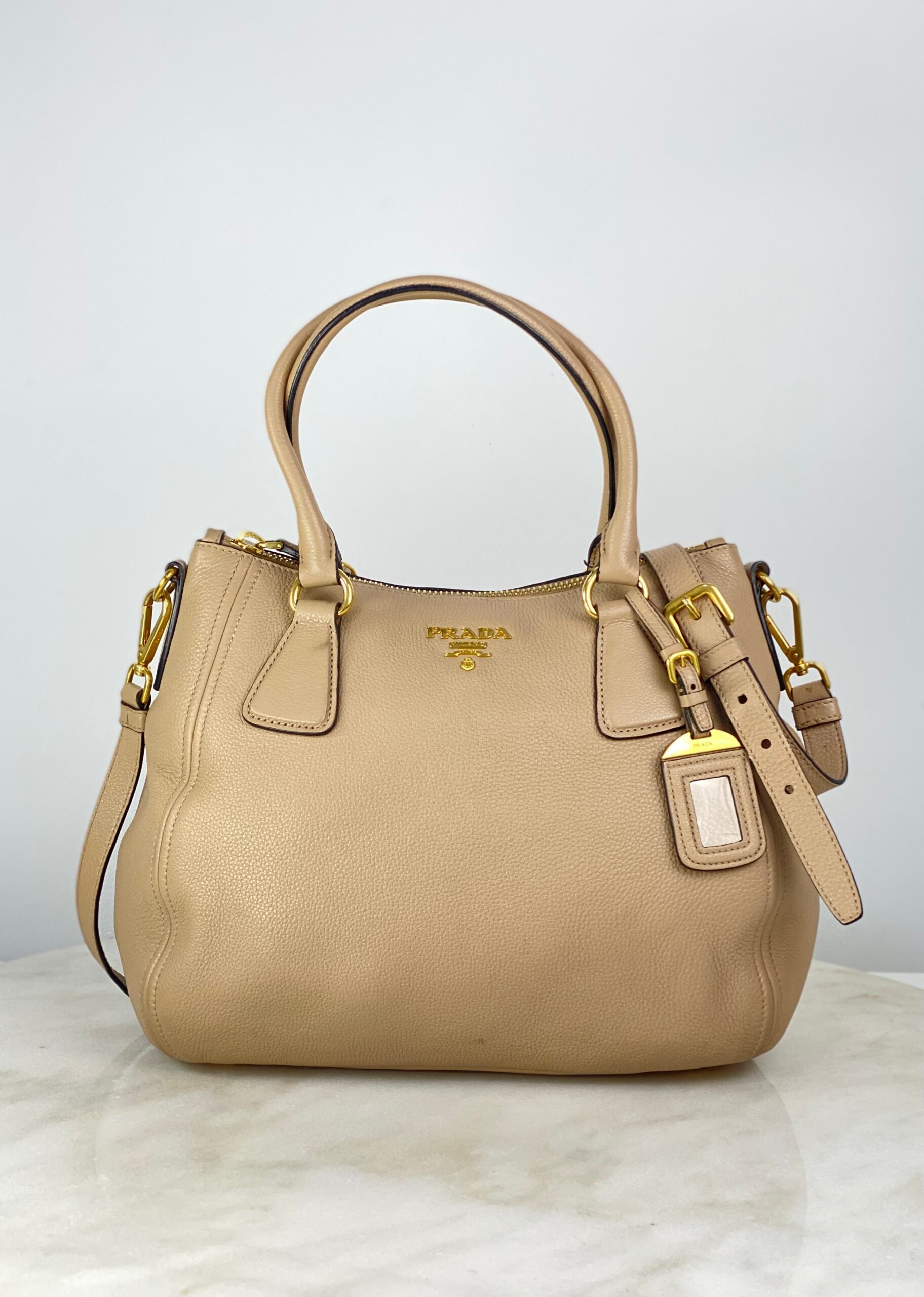 Prada Beige Vitello Daino Tote Bag W/ Strap
